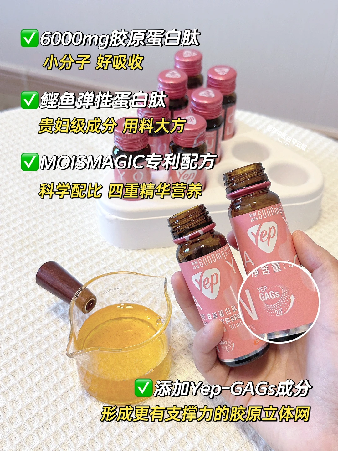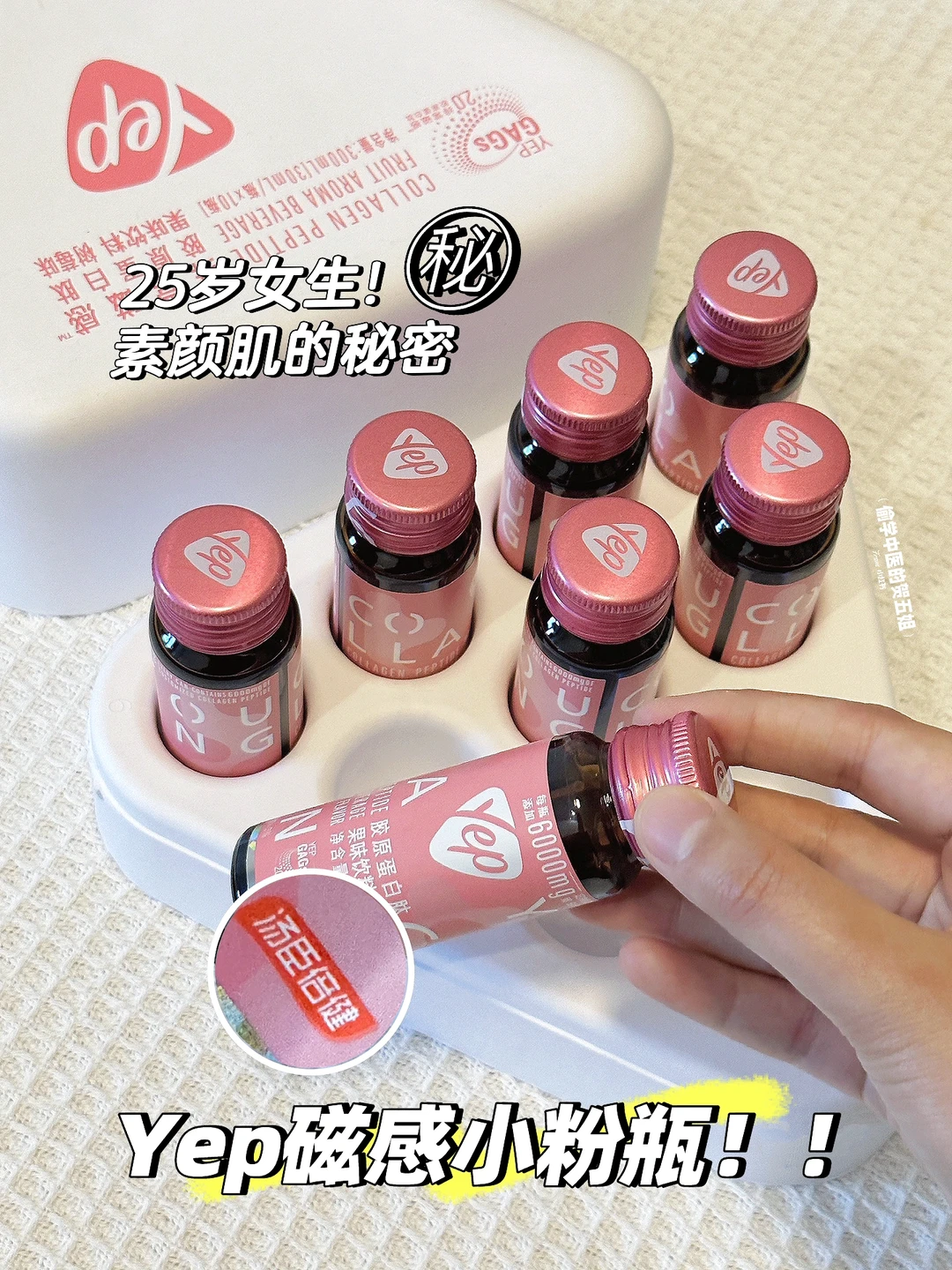 安利一款口服胶原蛋白,汤臣倍健旗下的Yep磁感小粉瓶,历时8年研发,小小一瓶里边有6000mg的小分子磁感胶原蛋白肽[黄金薯R][黄金薯R]还添加了GAGs成分、可以帮助肌肤搭建更弹润有序的胶原立体网,背靠大厂的品牌!喝起来放心~