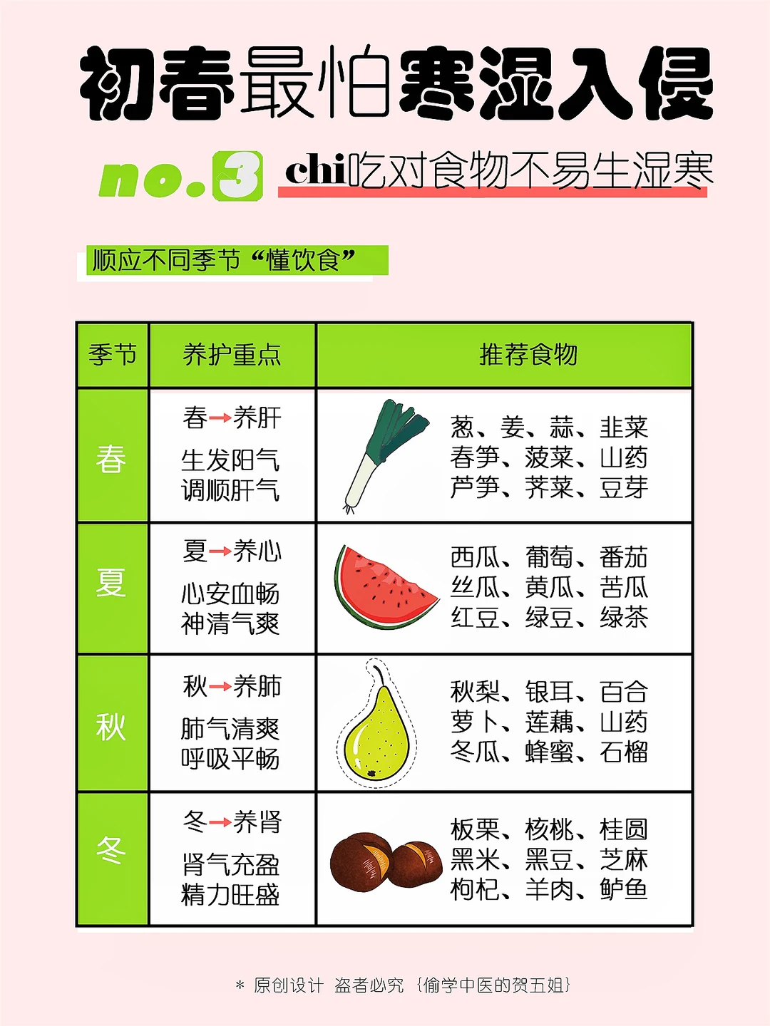 ‼️👉吃对食物不易生湿寒,顺应季节调五脏很重要