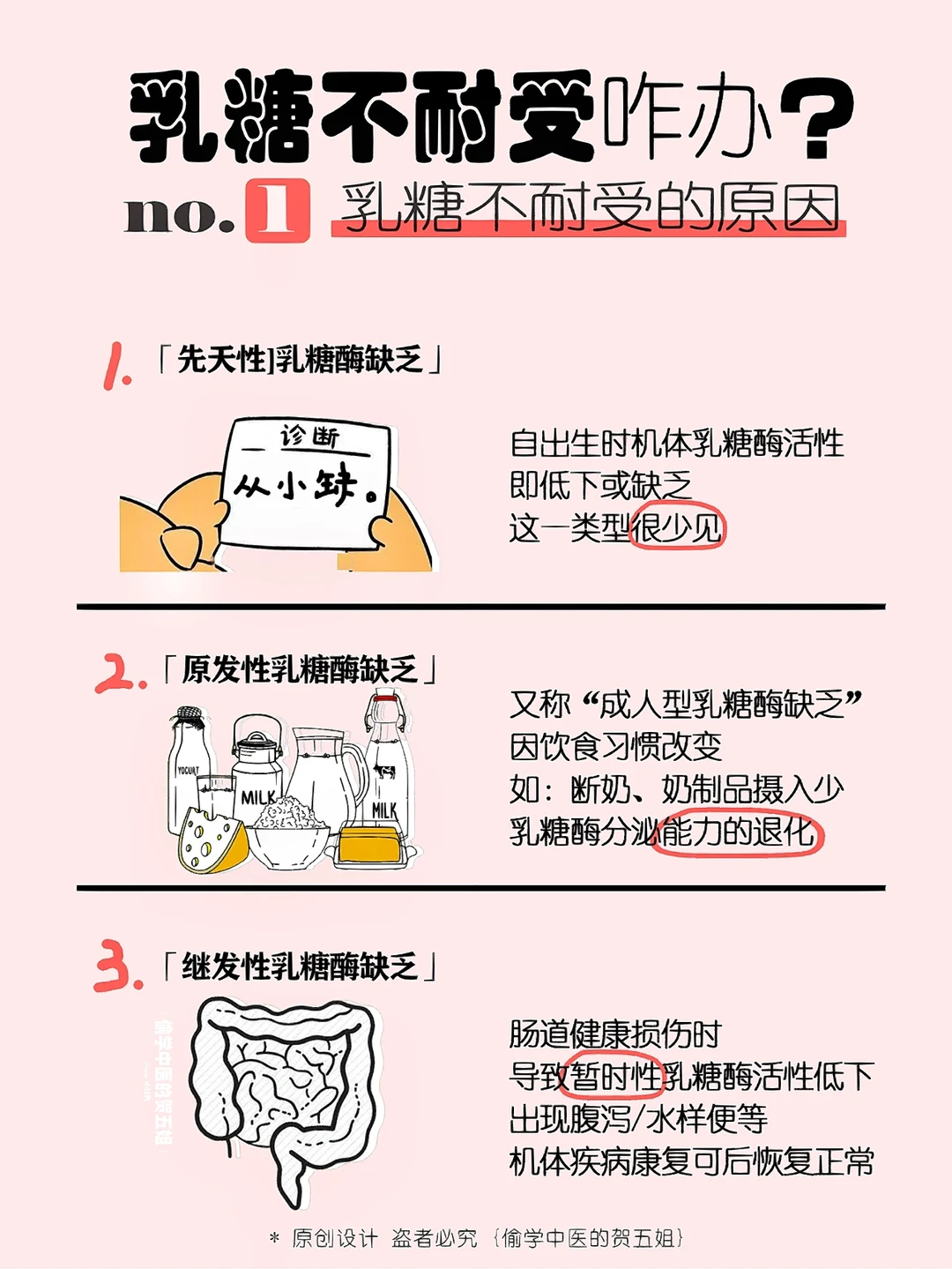 3⃣️继发性乳糖酶缺乏,因肠道健康受损,暂时性乳糖酶活性地下,出现腹泻、水样便~