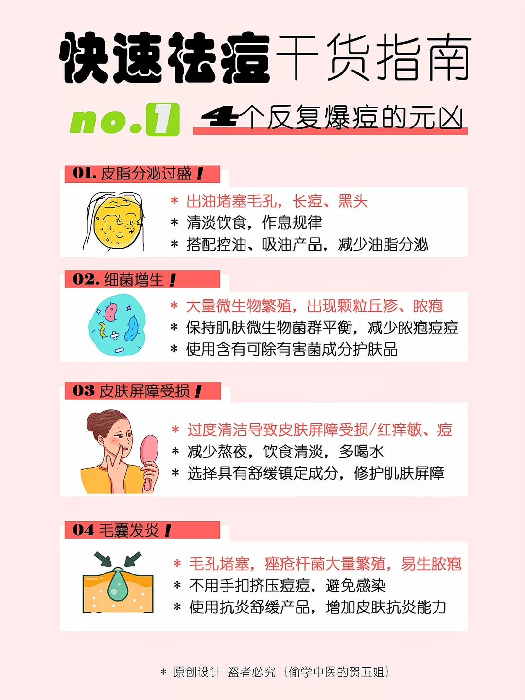 痘痘、痤疮、脓包...一直反反复复好不了‼‼祛痘的关键是要了解长痘的原因后对症下药[赞R][赞R]这份快速祛痘攻略请查收