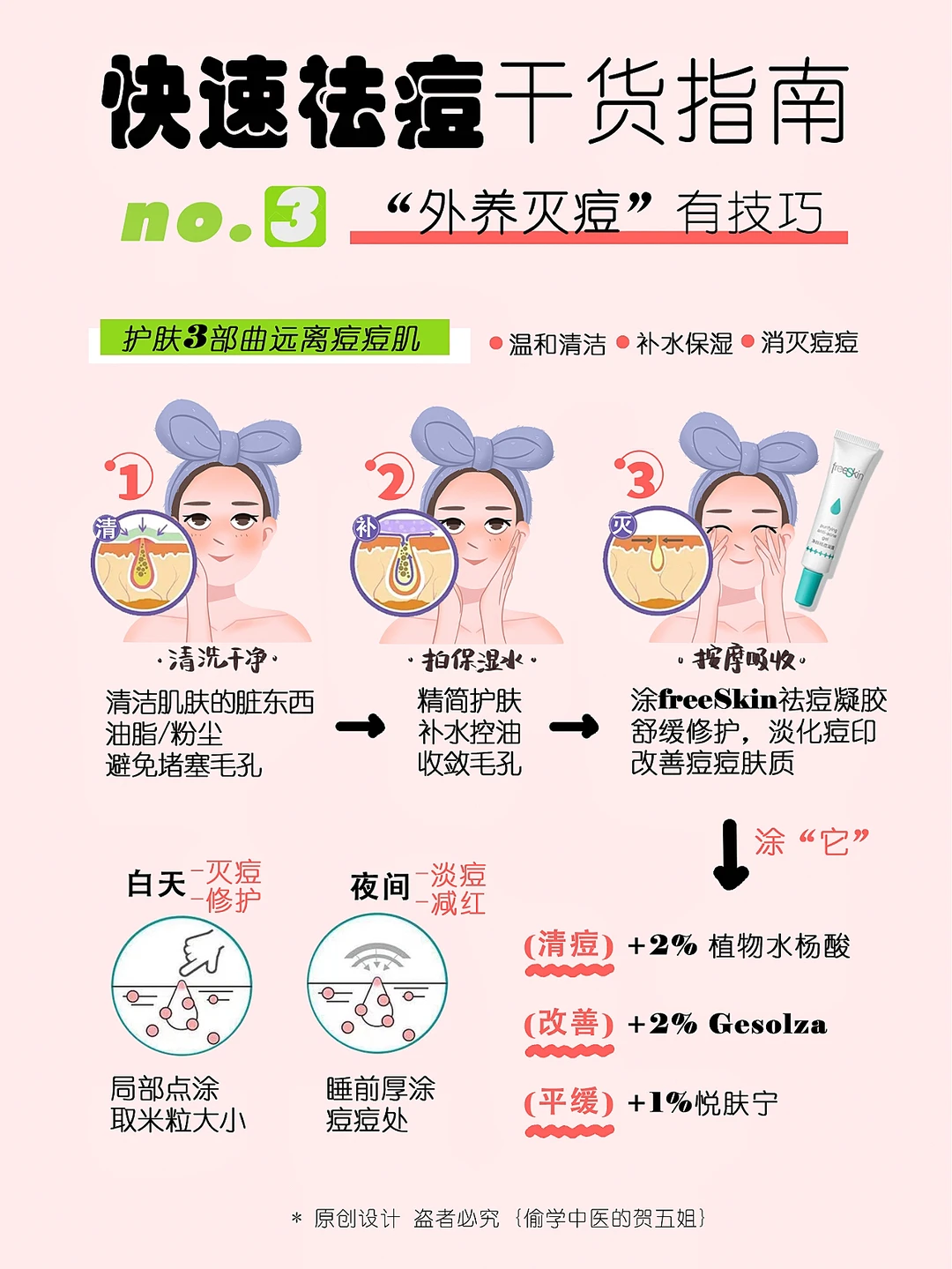 痘痘肌护肤,精简为主‼‼洁面要温和不刺激,护肤做好基础补水保湿、防晒!同时,痘痘肌产品没用好只会让皮肤加雪上加霜!安利一款适合油皮、敏感肌的freeSkin祛痘凝胶[黄金薯R][黄金薯R]