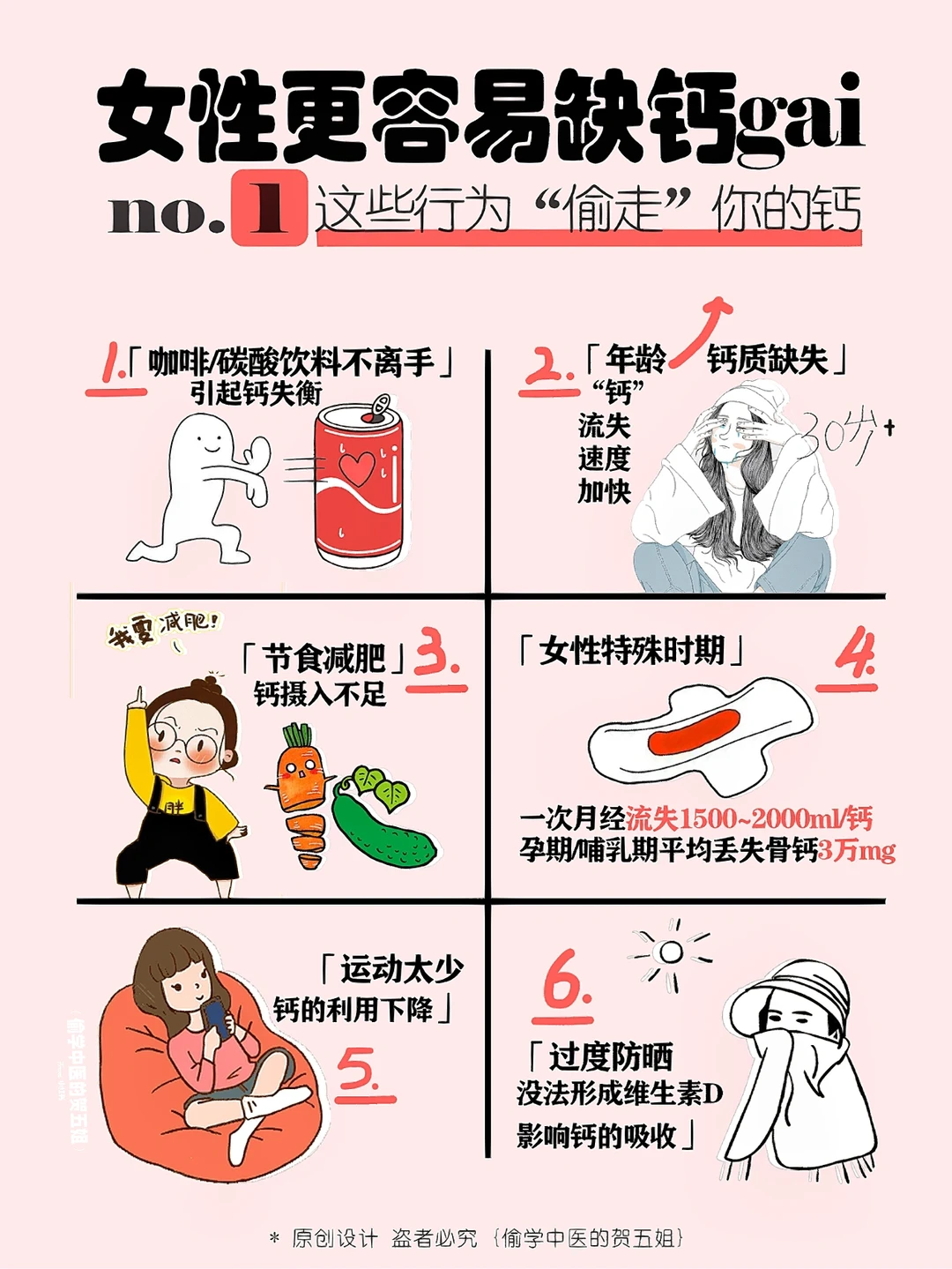 但,女性更因经期、妊娠、哺乳等因素…尤其30岁+钙质流失速度加快‼️‼️女性相比男性更容易出现“缺钙现象”⚠️⚠️身体缺钙的信号