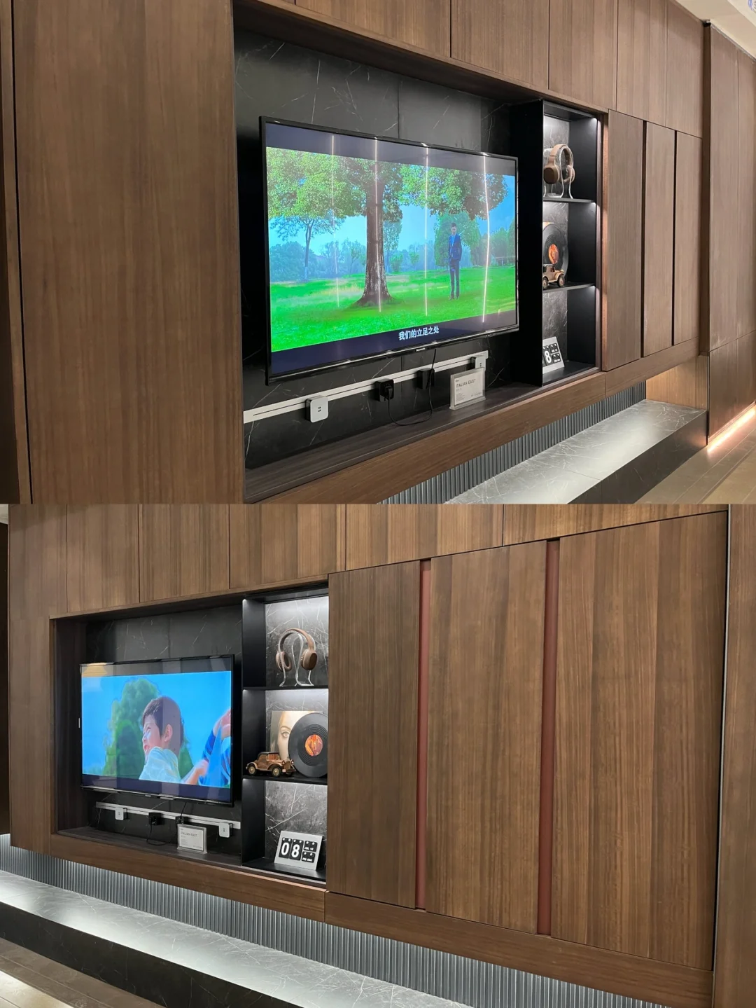 ✨本次圣象还和敦煌的联名,“意东方”系列的客厅空间,墙板和门板用的相同的材质,尽显大气底蕴。它还内藏玄机,细看能看到国风的故宫红,漆感栅格饰面穿梭于柜体中,新古典风格引领新风尚!