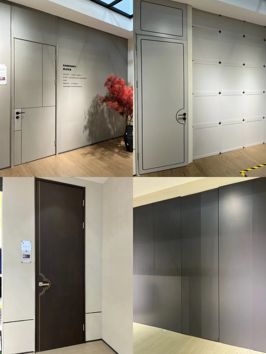 🥰吸引到我的还有它的柜门墙一体化定制,门扇和墙板运用同一元素设计,门扇仿佛隐形了似的。康定斯基、新四合院、梅花三弄和银河这四款通顶门,都运用了20mm极窄套线加上封板通顶的工艺,简约高级,简直是长在我的审美上了。