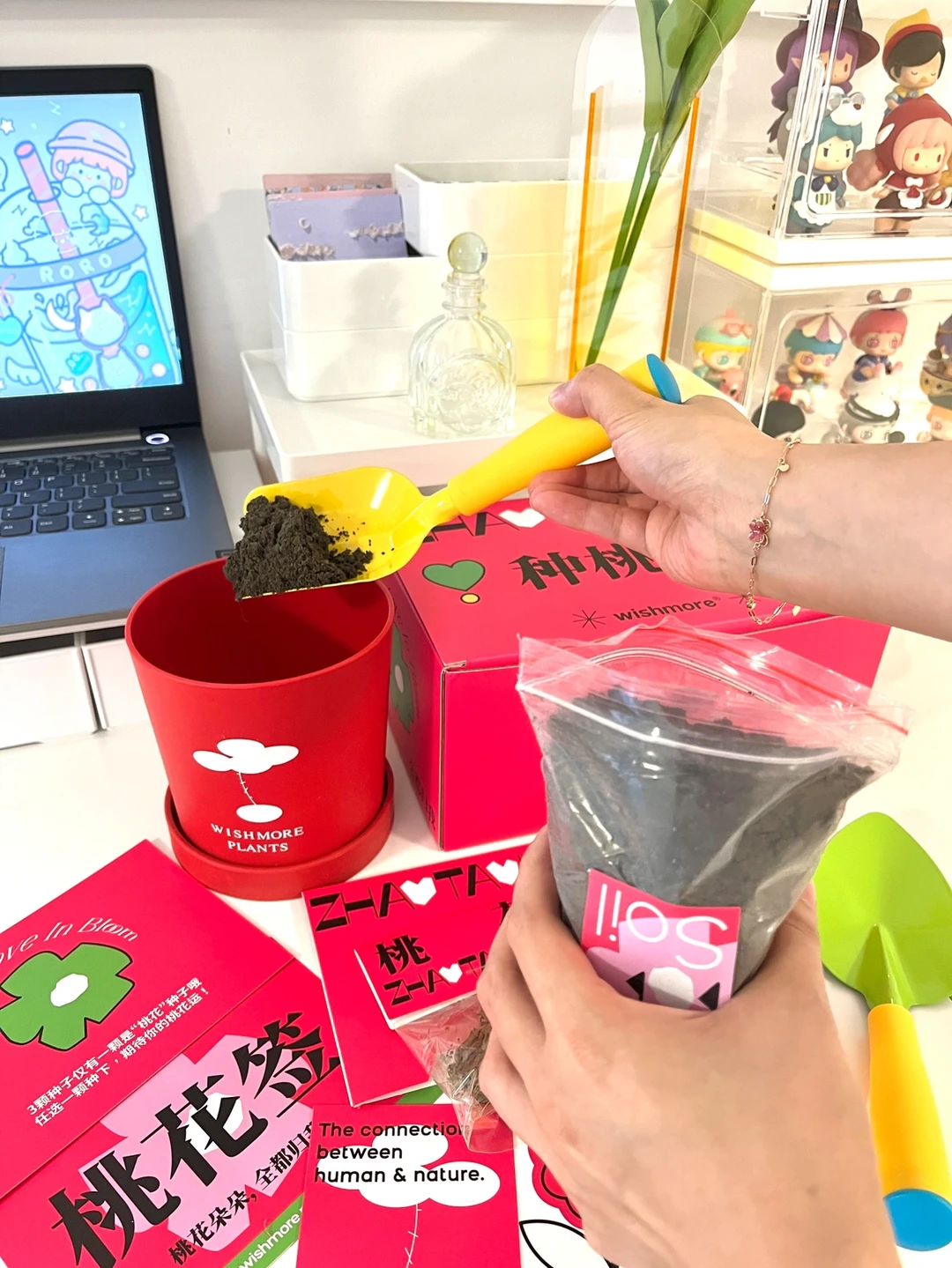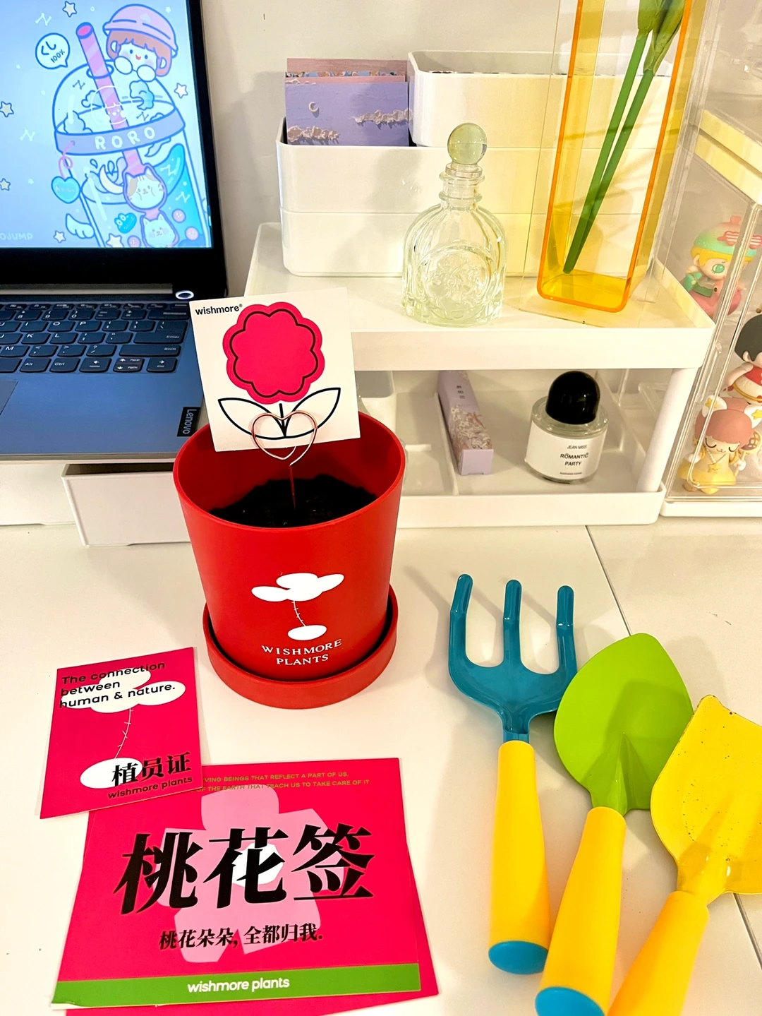 种了棵桃花🌸,准备送给那个母胎solo的姐妹~现在的礼物真的太卷了🐶,这个包装好精致哦,里面有洋牡丹种子、脱单土、劳作工具、各种卡片,仪式感满满!
