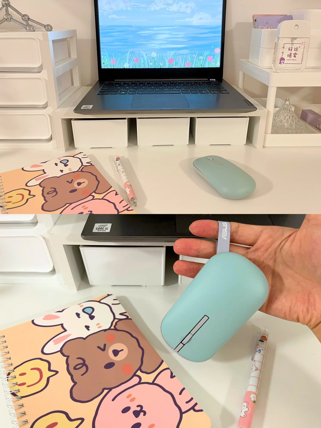 ✨今天蓝牙鼠标到了,有紫色和绿色两个色的磁吸外壳,可以随意变换,都是我hin喜欢的糖果色,🥰手感不错,按键也够静音,自带的挂绳方便携带,居家办公必备呀~