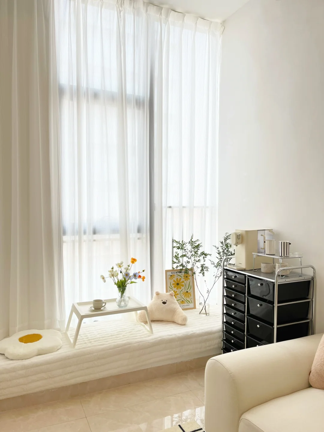 我爱这个飘窗,喜欢家里洒满🔆阳光的感觉,阳光透过百叶纱折射进来,感觉整个心房都被照亮了~