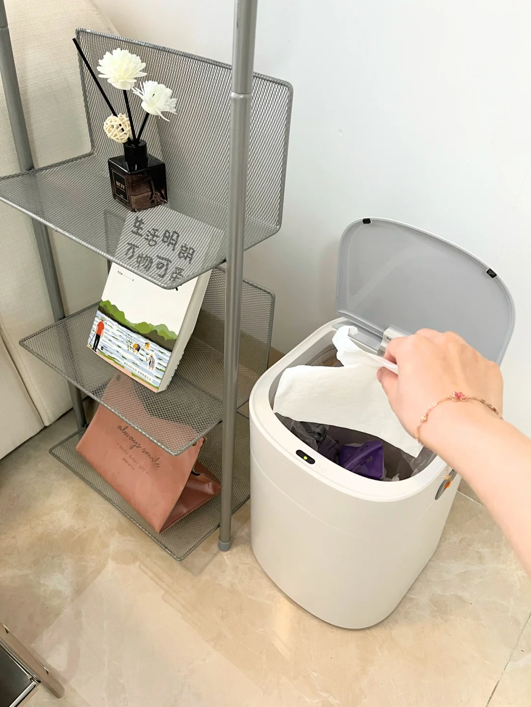 家里每一样东西都精挑细选,连垃圾桶🗑️也要选颜值高的!话说感应垃圾桶真心方便呀,伸手就打开,用完自动闭合,太适合我这种懒人啦!