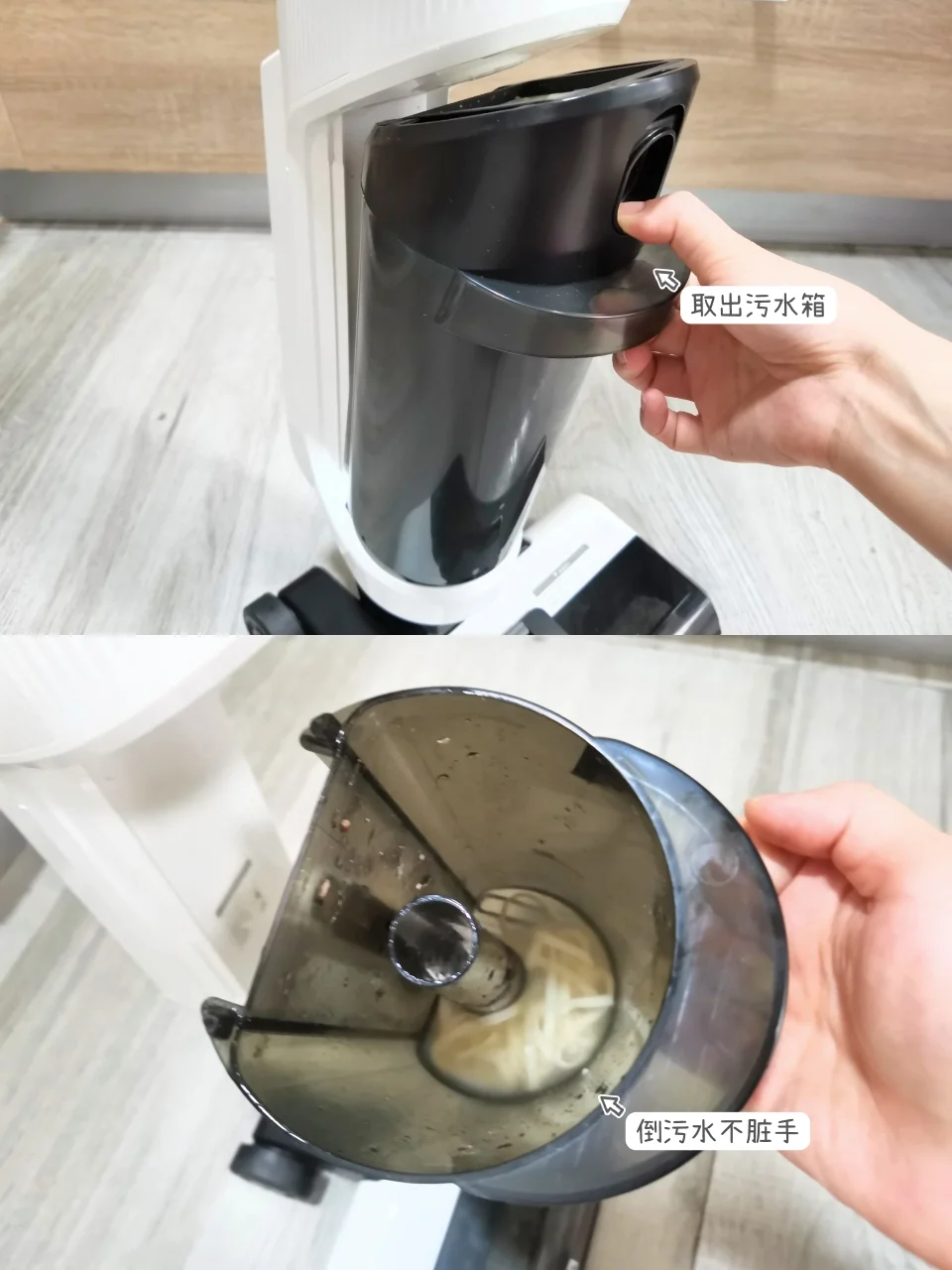 滚刷脏了不用手动清洗,也是我敲满意的一点呐~只需踩一下踏板就能自动清洁滚刷,再把污水桶里的脏水倒掉就OK啦,全程不脏手,解放双手的清洁好物,🧡精致女孩赶快安排上呀~