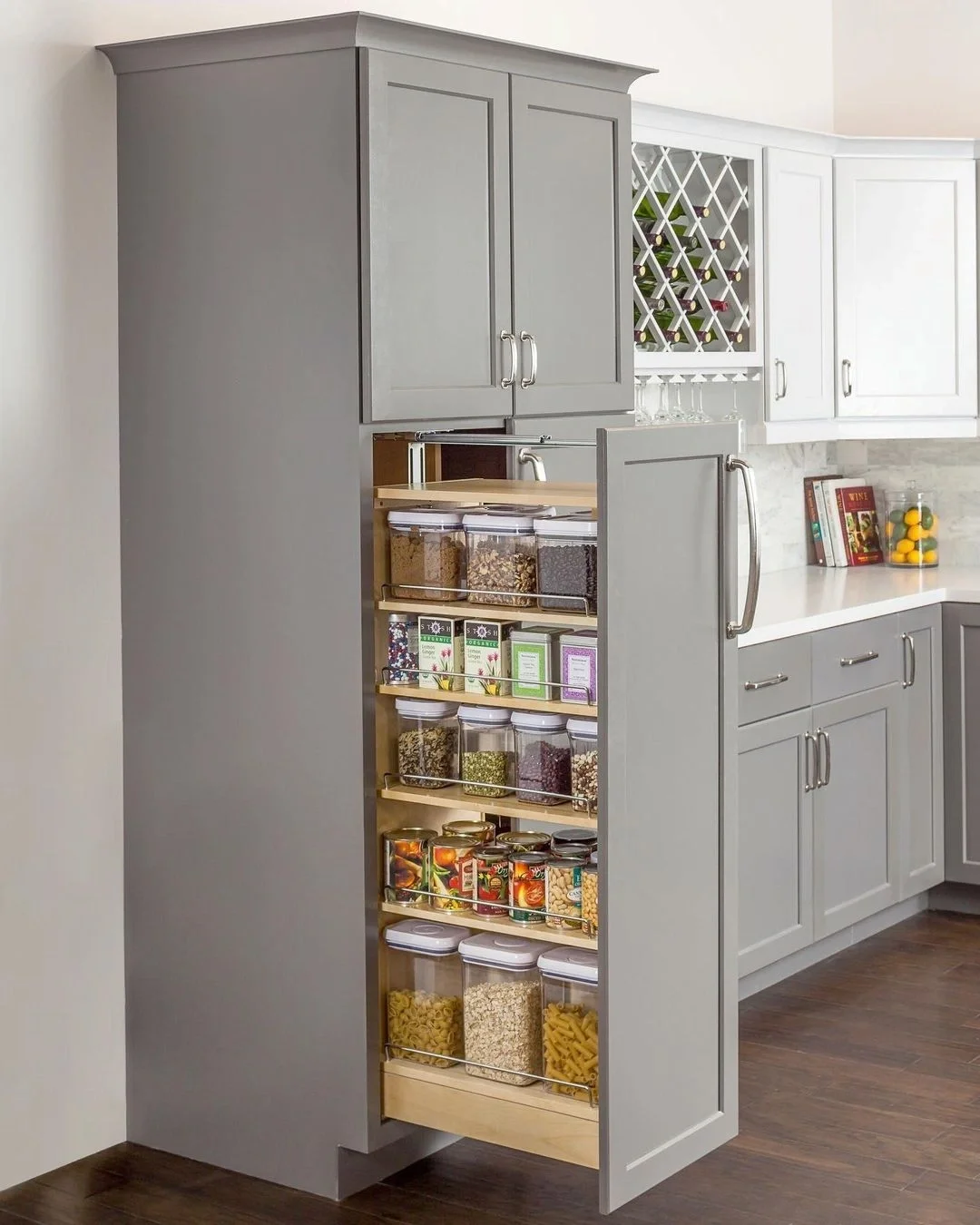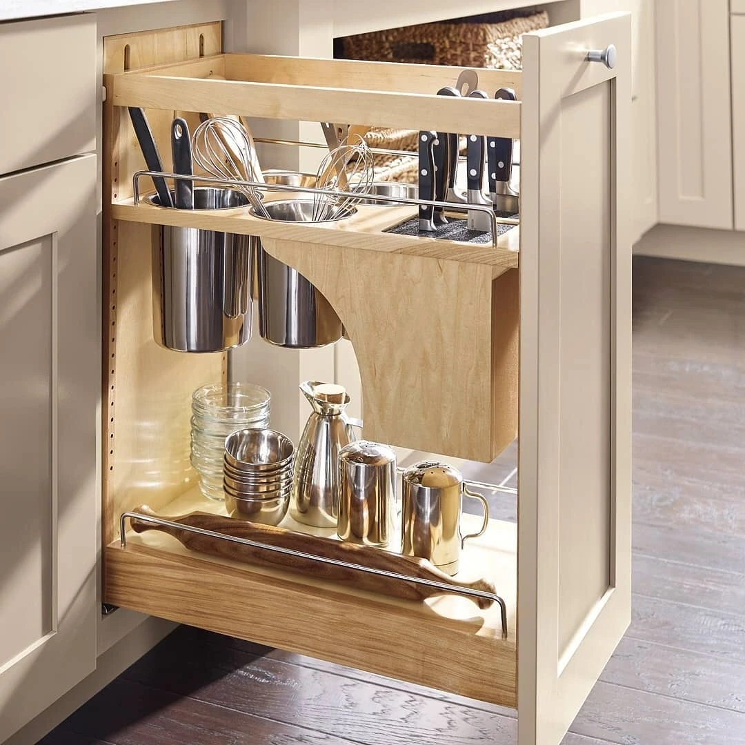 图7–8 这种橱柜拉篮可以收纳刀具、锅铲、汤勺