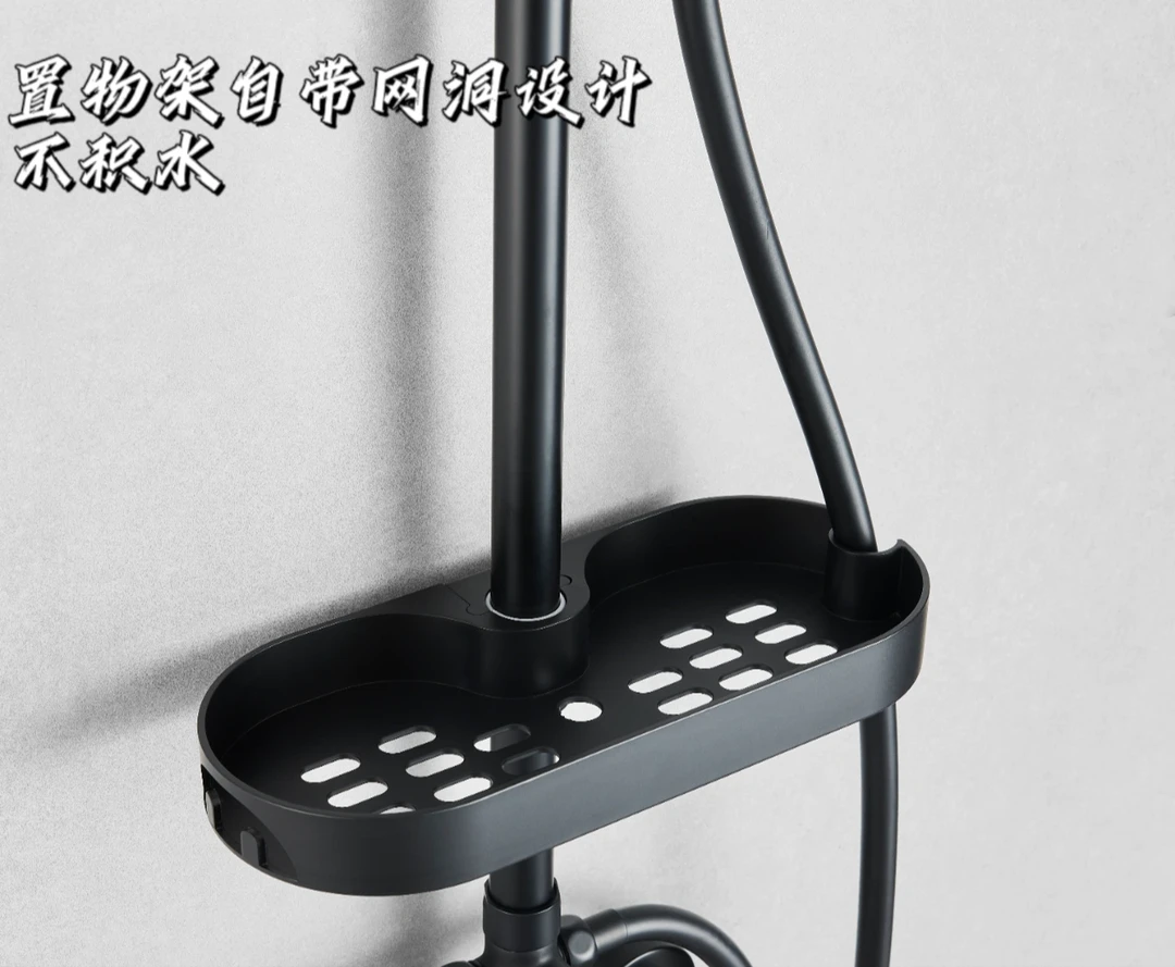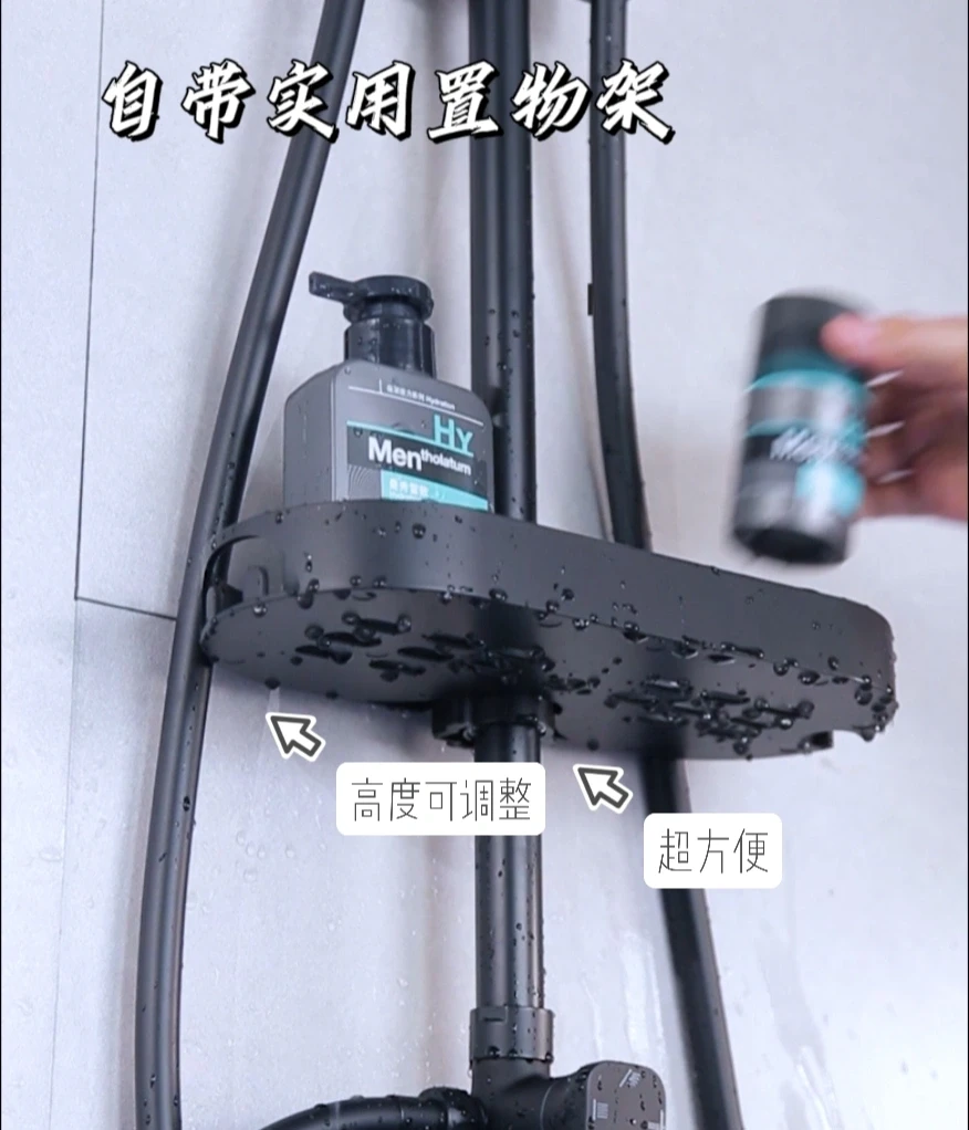 🌈自带一个宽大、实用的置物架,高度可以调整,可以摆放多种洗漱用品,给小卫生间节省了不少空间,扩大了淋浴空间。