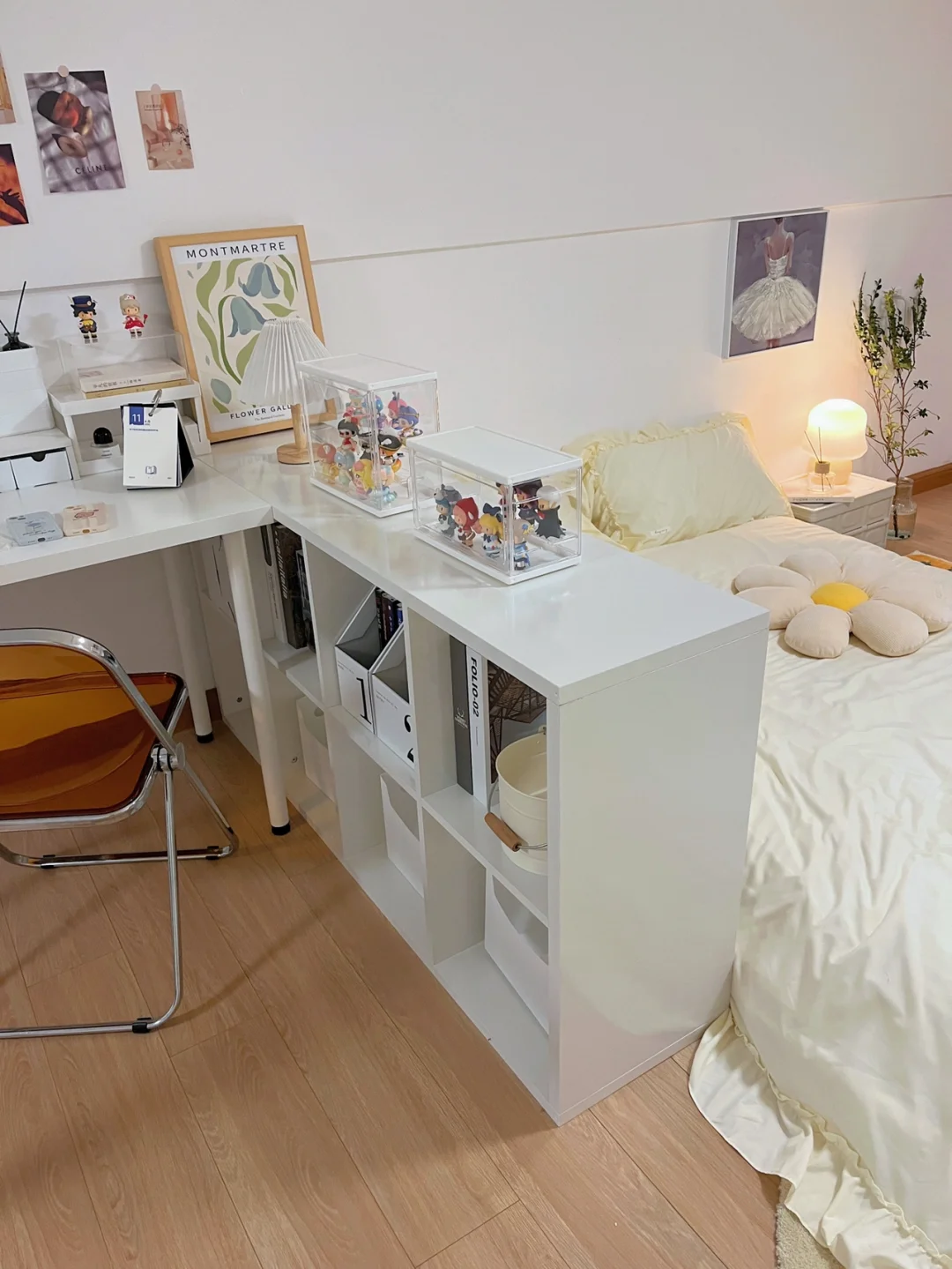 👉🏻宜家书桌+宜家同款八格柜,桌子腿可以调节高度跟八格柜平齐,强迫症表示极度舒适~