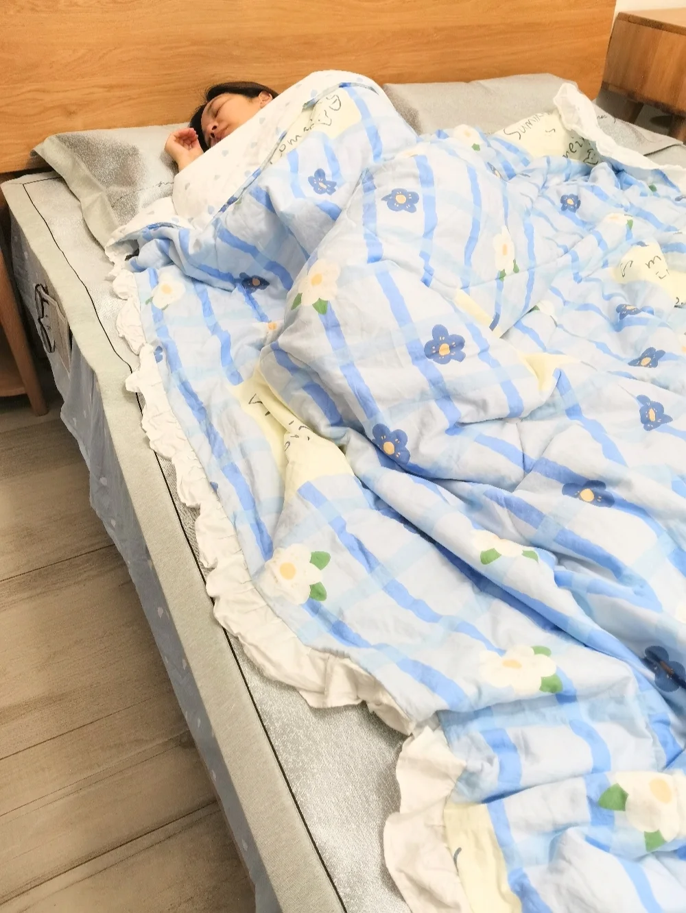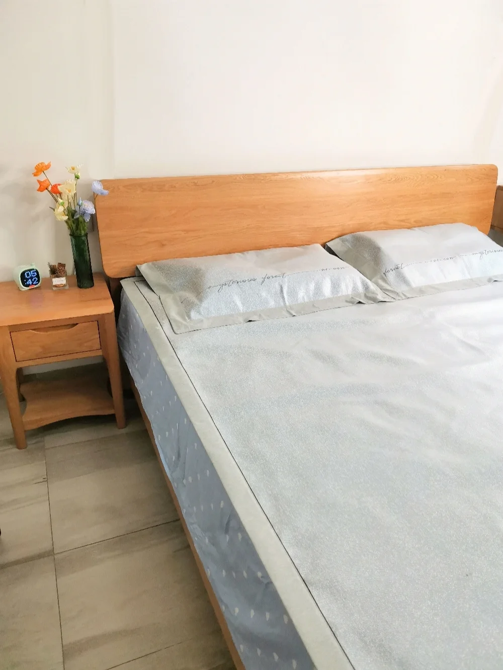 来看我收到的新凉席,低饱和度灰色调跟我家原木风家具好搭~