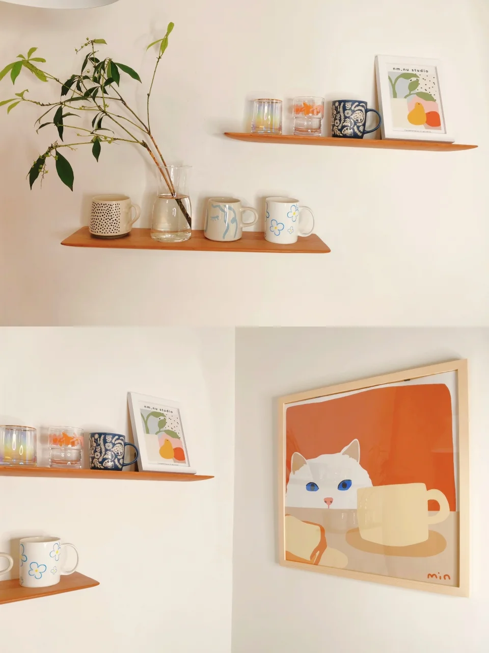 🧡房子虽小,但生活还是要有仪式感,墙上的隔板摆着我心爱的杯子,偶尔换换也能换换心情。