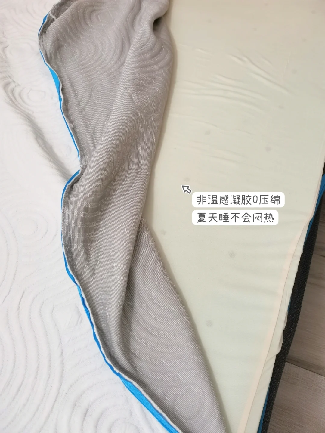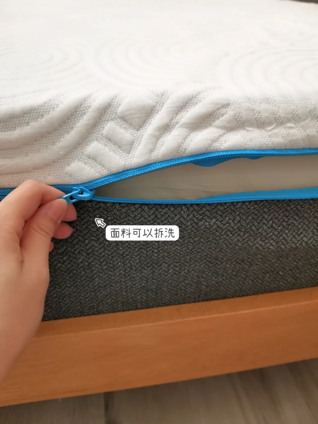 🌈面料柔软舒服,是有拉链可以拆洗的哦,灰常方便。打开拉链可以看到床垫上层是一层非温感凝胶0压绵,夏天睡舒爽不会闷热。