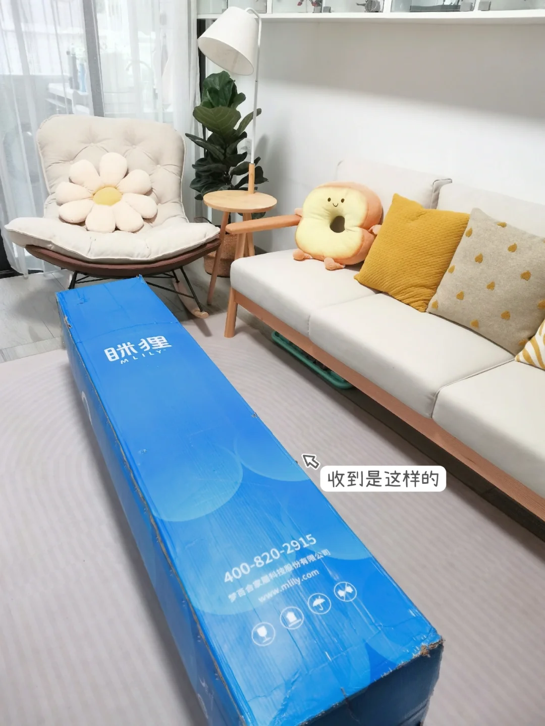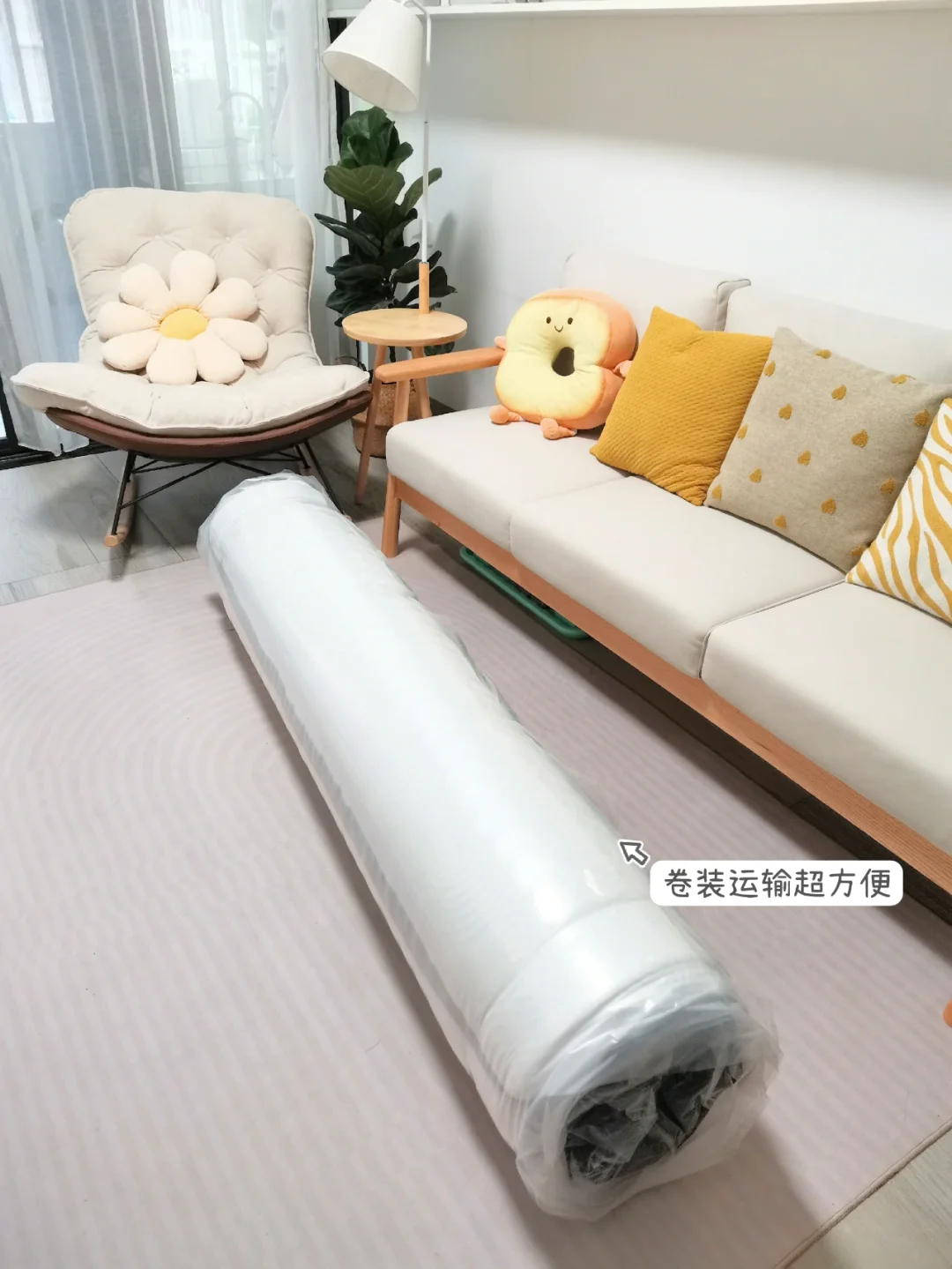 快递送上门,是一个蓝色的盒子,看着体积小小的,但拿起来却好重✔️,打开里面是抽真空卷装的床垫,这样运输挺方便的👍🏻。打开包装,床垫慢慢就复原原样了~