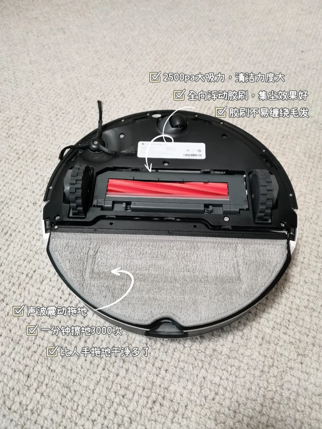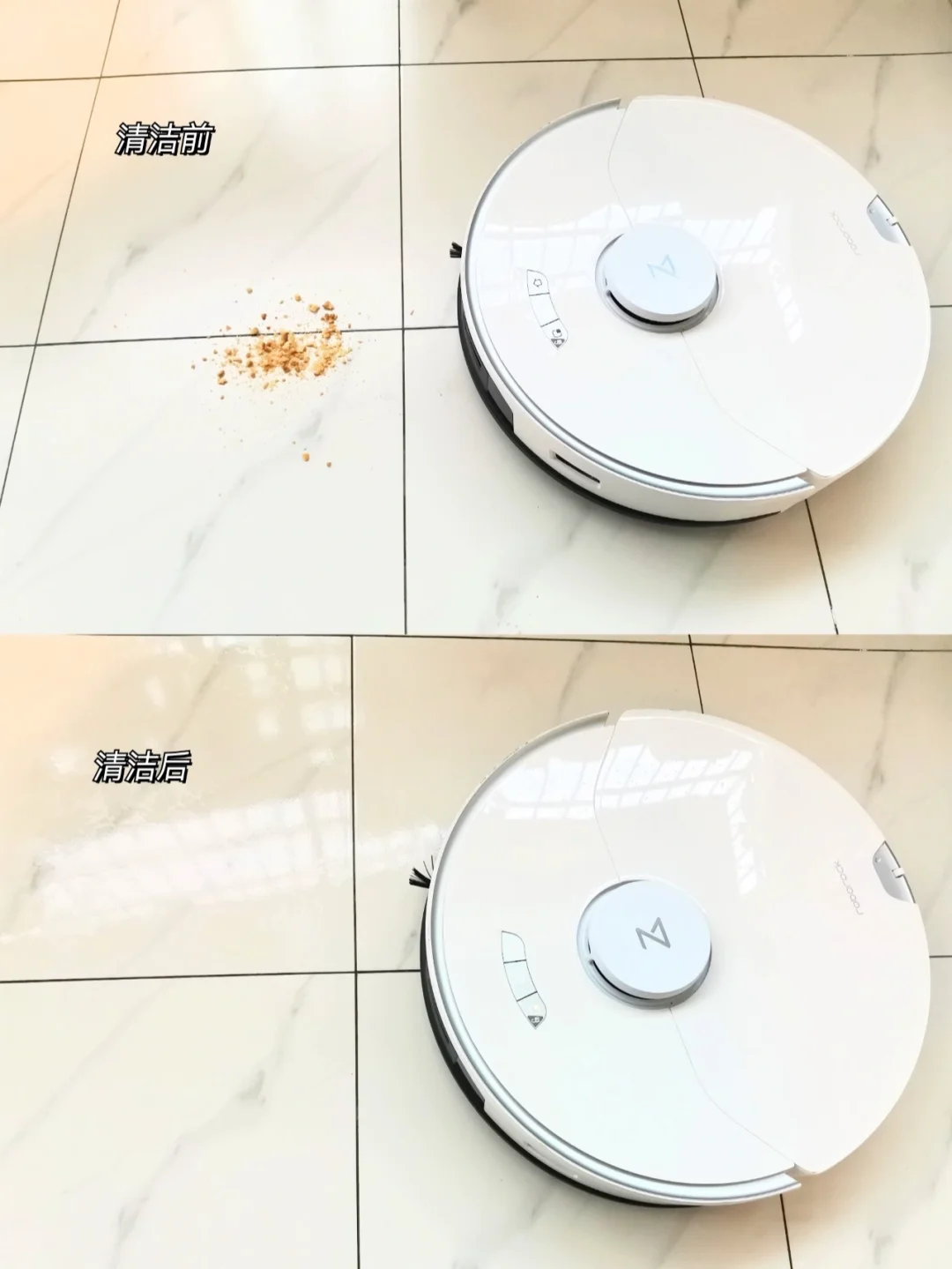 ✔️它的清洁力度也是不错的,灰尘、头发、食物渣、纸屑、树叶都能打扫干净。拖布是振动擦地的,一分钟擦地3000次,比自己拖地还干净呢~