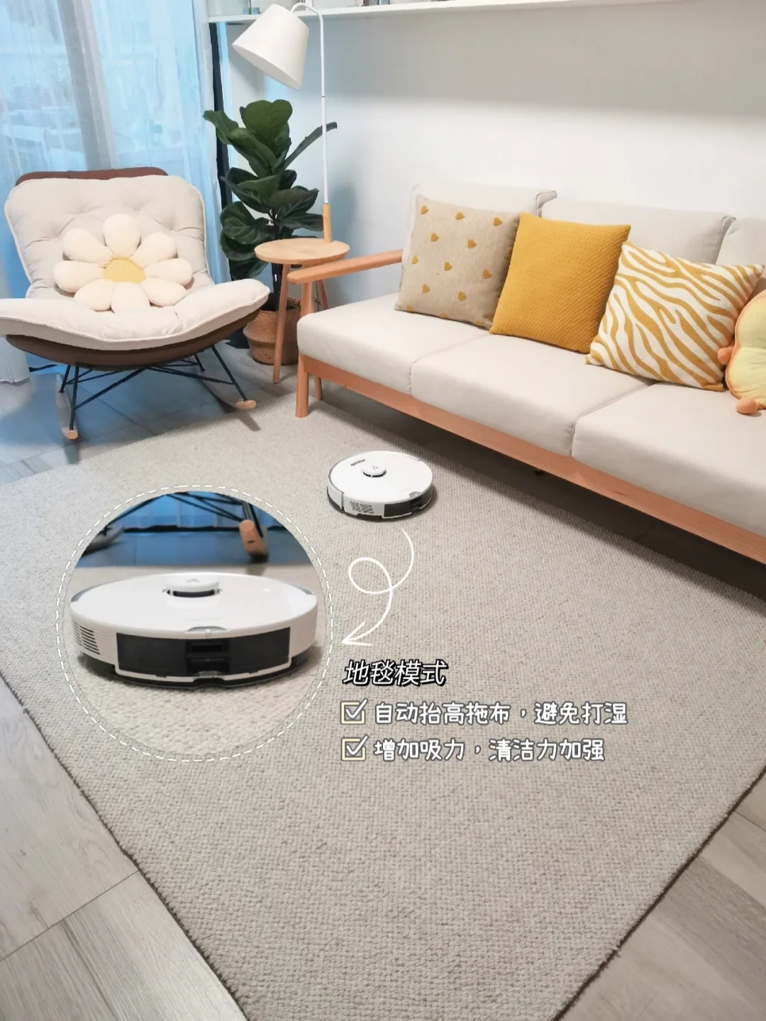 ❓朋友问我地毯怎么清洁呀?我以前用的扫地机都不能清洁地毯,怕打湿,都是用吸尘器清洁的,换了石头G10就省事多了,它能够自动识别地毯并抬起拖布,避免打湿地毯,同时还会增加吸力,好贴心的设计哇~