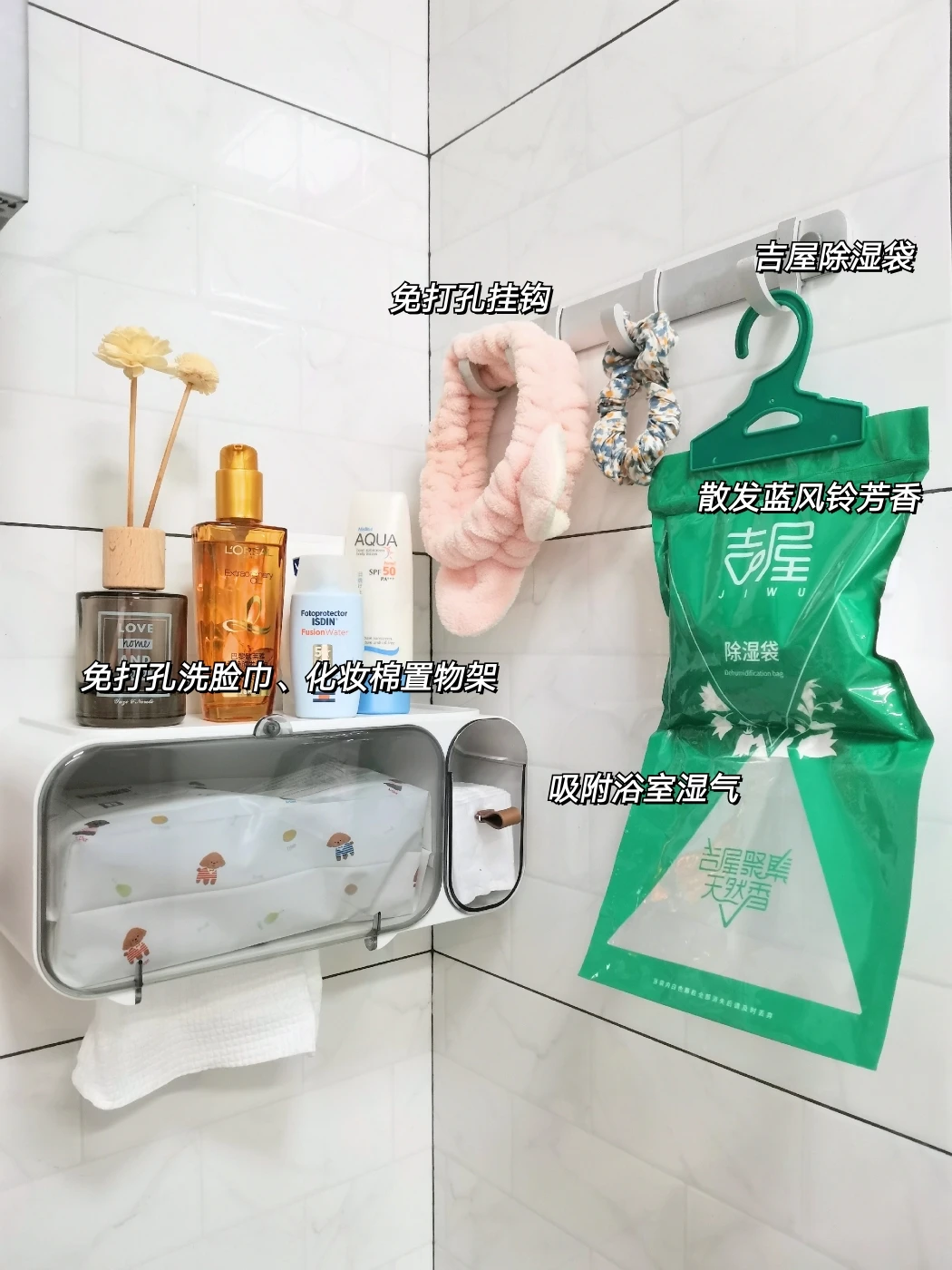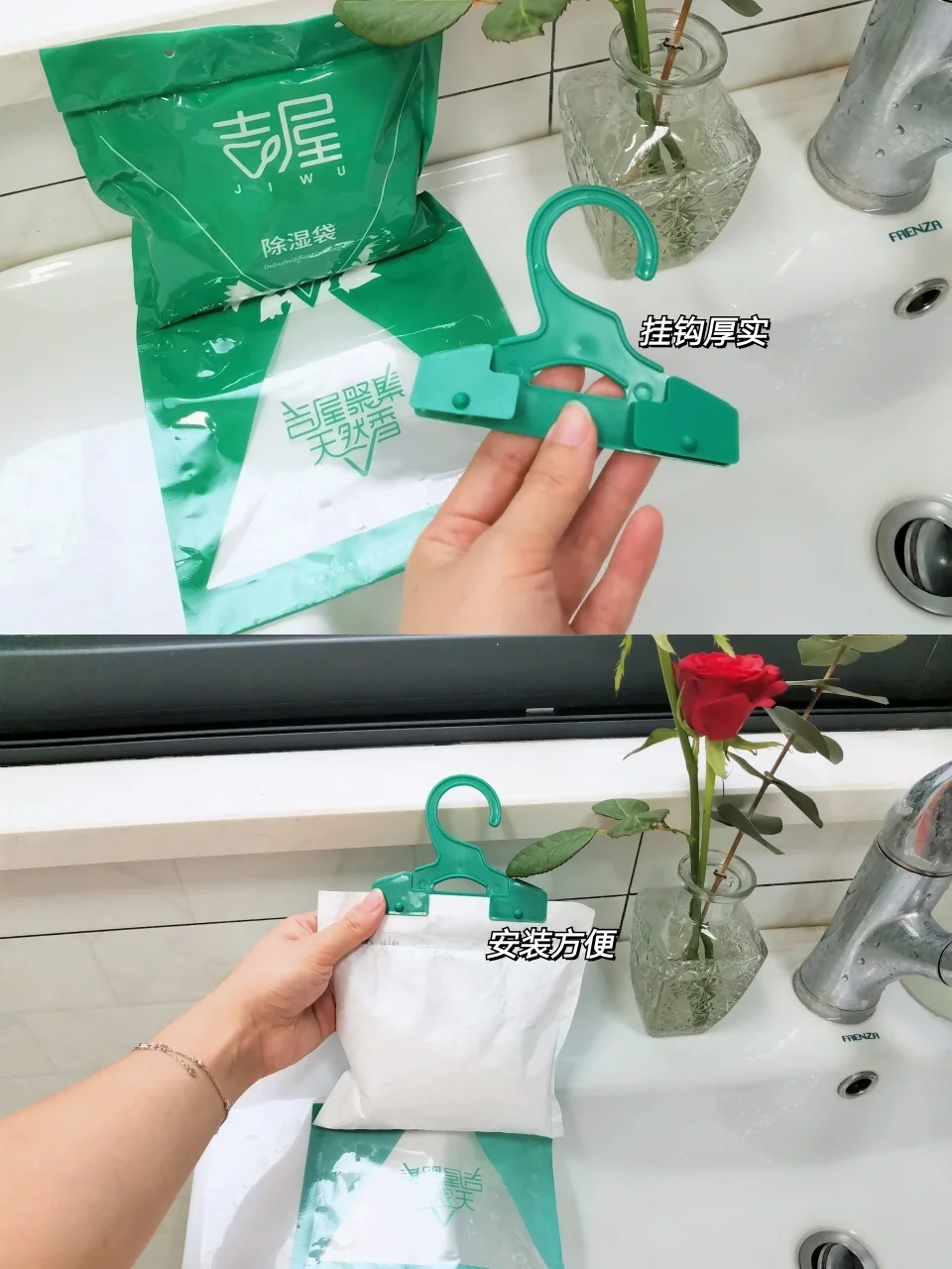 不喜欢浴室湿漉漉的,我新入的除湿袋不仅吸湿快,而且还有淡淡的蓝风铃芳香,小小的卫生间都变得香香哒,幸福感up,四舍五入省去了香薰钱~挂钩可以随意挂在任何地方,好方便,现在我家衣柜也挂上了,除湿力很可~
