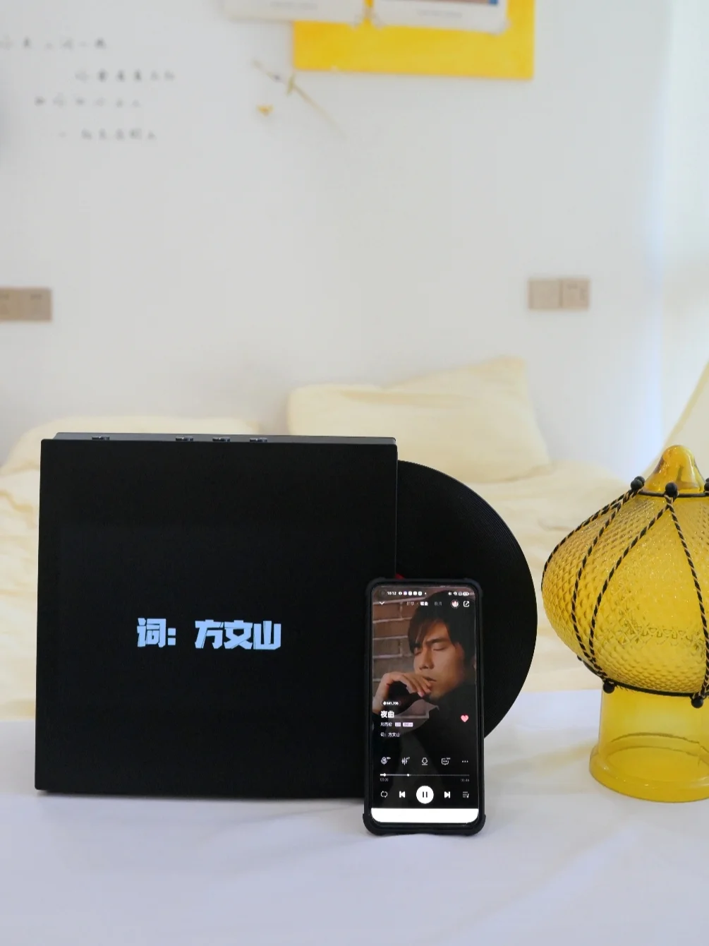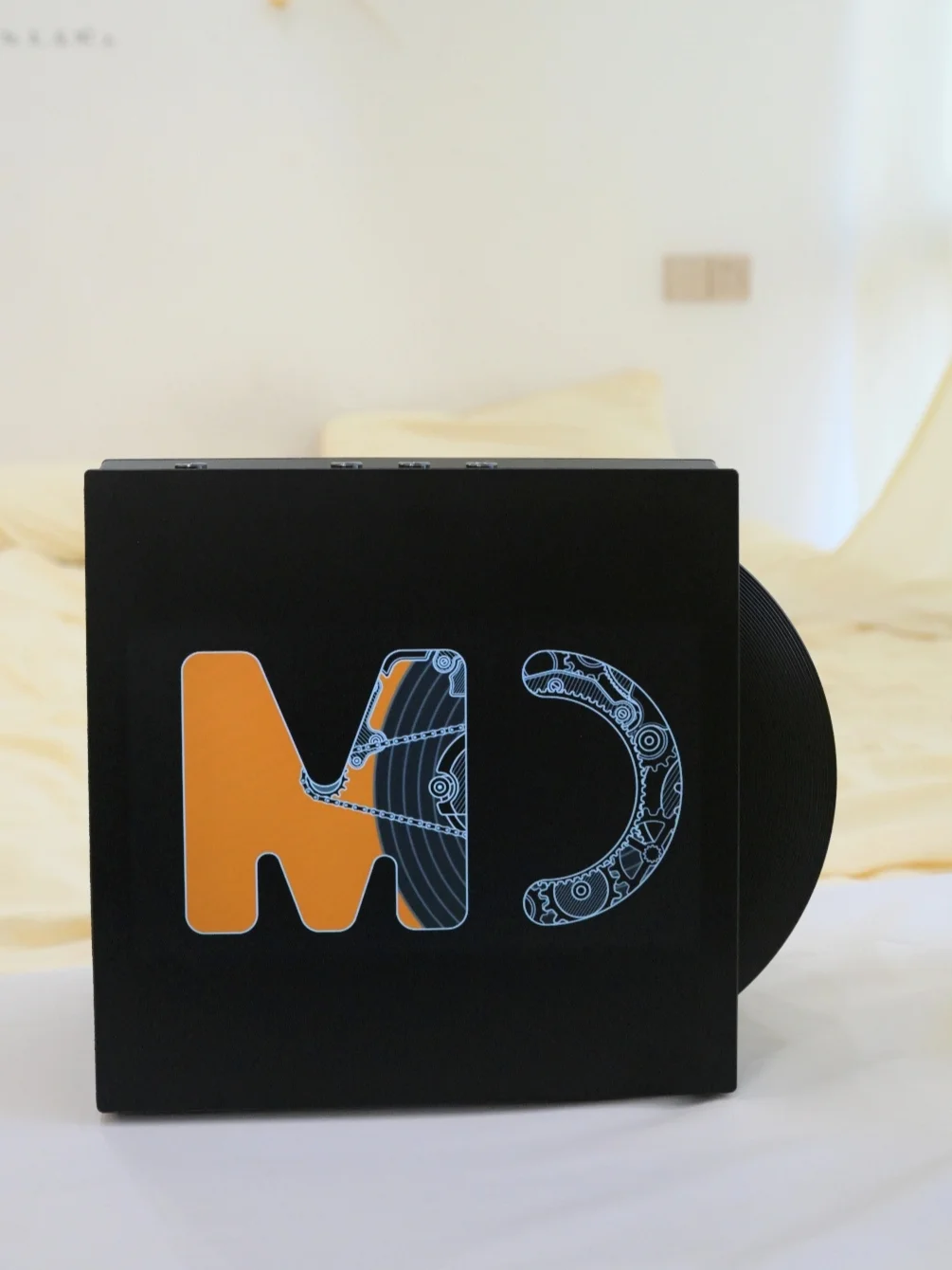 [飞吻R]我第一眼就被他的颜值吸引啦,方形纯黑色的造型简洁大方,男生一定喜欢😍吧!体积小巧不占地方,放在🛏️床头刚刚好~让我惊喜的是,侧边可以推出来一张黑胶唱片,🌈打造氛围感家居就是它没错啦![害羞R]老公也说这款音响太有品味啦~