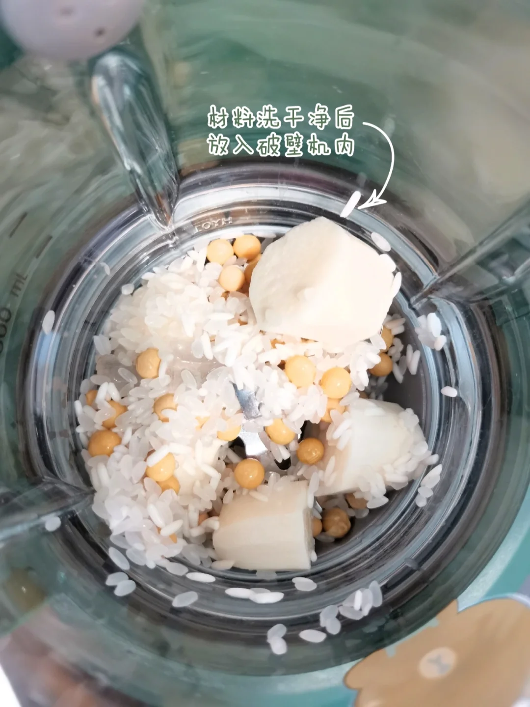 🌸材料:淮山50克、糯米20克、大米10克、黄豆30克,冰糖适量
