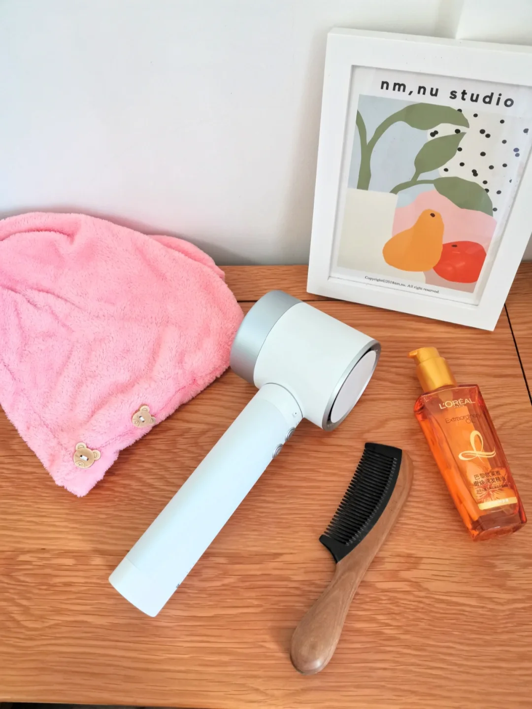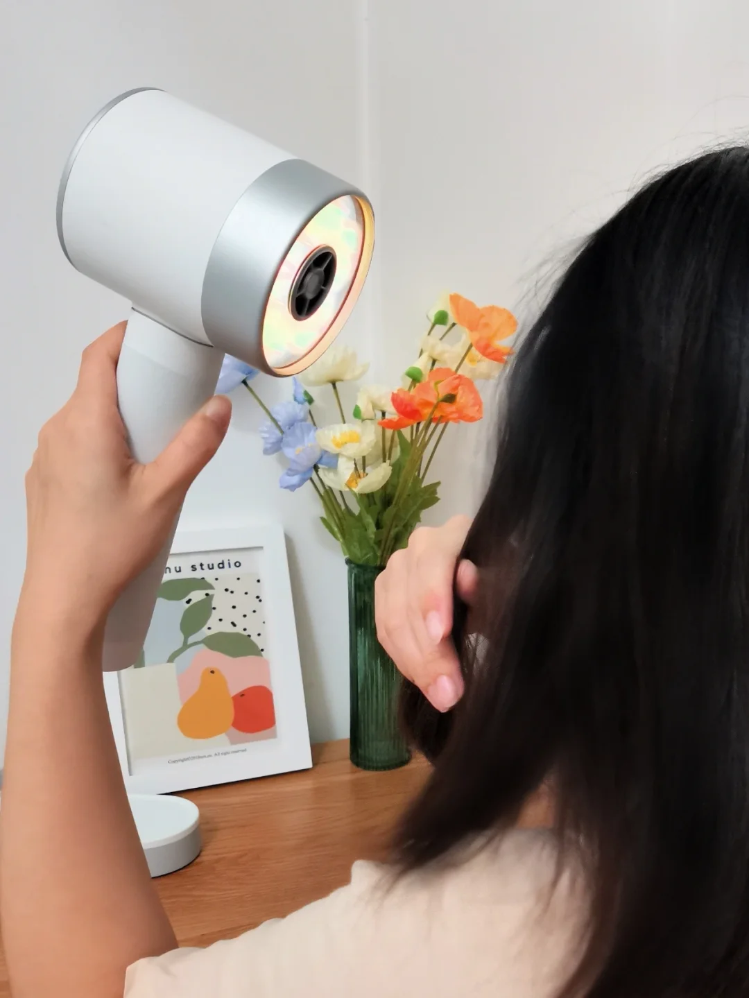 ✔️头发干得快,又不会让发丝失去里面的水份,吹完头发很顺滑,不毛躁。