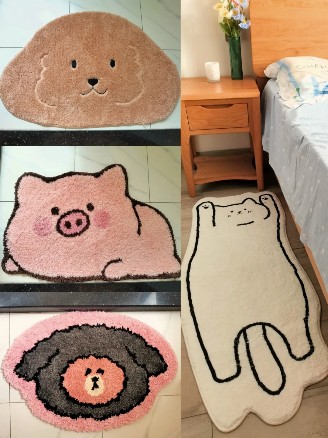 看到可爱的登西就忍不住买买买~这不又入手了3张卫生间地垫,厚实、吸水性好,换着用还能装饰浴室。猫🐱卧卧地垫铺在床边,踩下去真的太舒服啦!