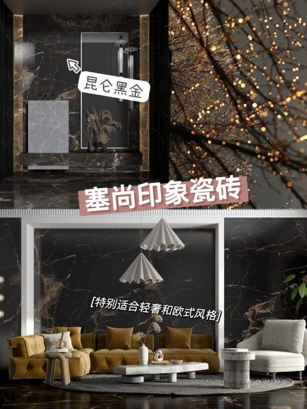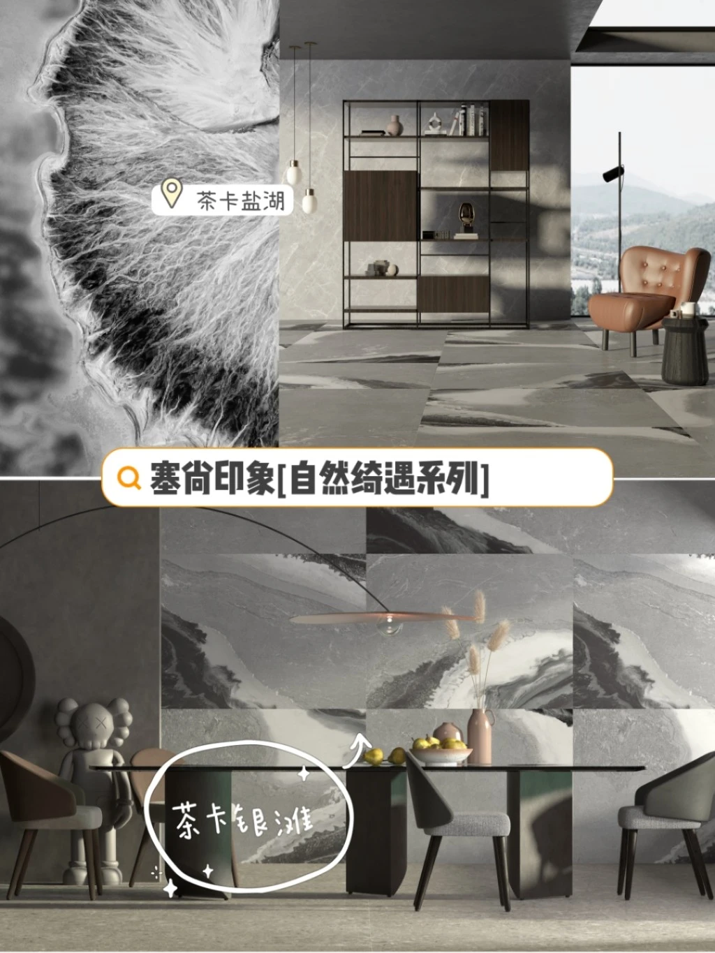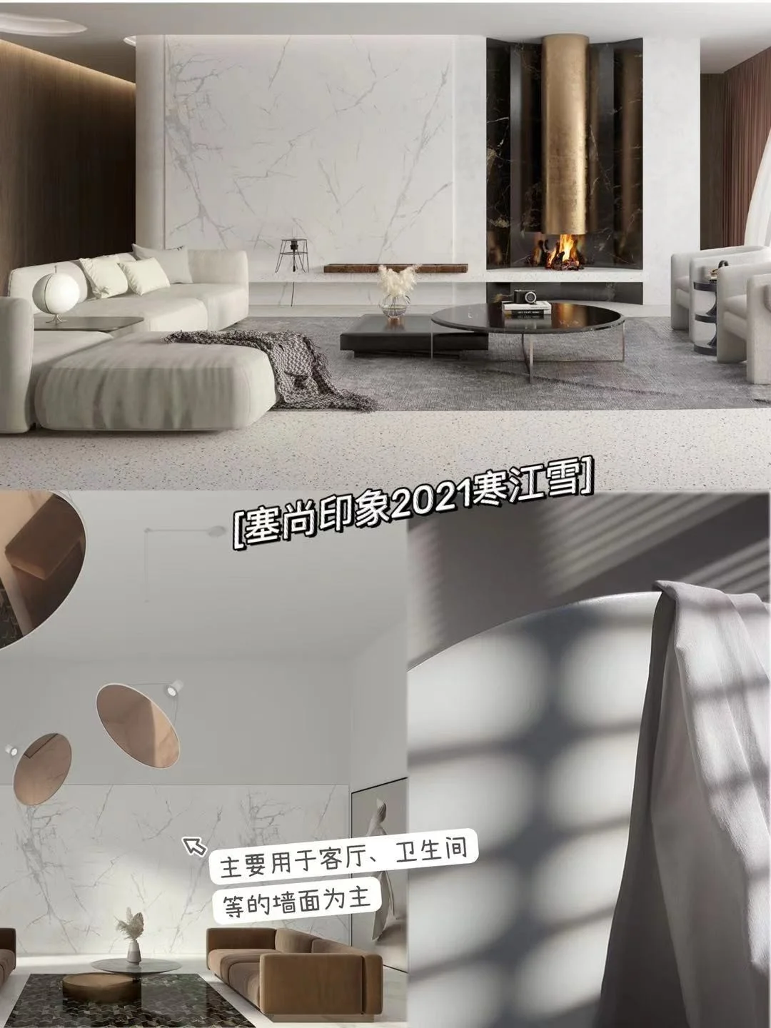 [哇R]我在准备这些资料的时候,发现了一款新品瓷砖——塞尚印象【自然绮遇系列】,听说是携手《国家地理》探寻自然造物主的灵感之源,激发的灵感,个人感觉非常适合轻奢风的装修,有想法的小伙伴可以多了解一下。这个系列的瓷砖的规格有1200*1600*12、2400*800*9两种,可以适应客厅背景墙/卫生间墙面/餐厅背景墙/或者通铺等多种场景。