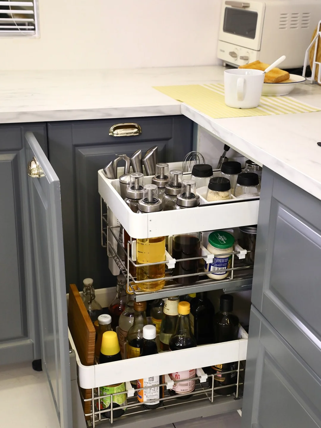 ☑️调味拉篮是解放台面的小能手,还可以让调味料收整齐美观。