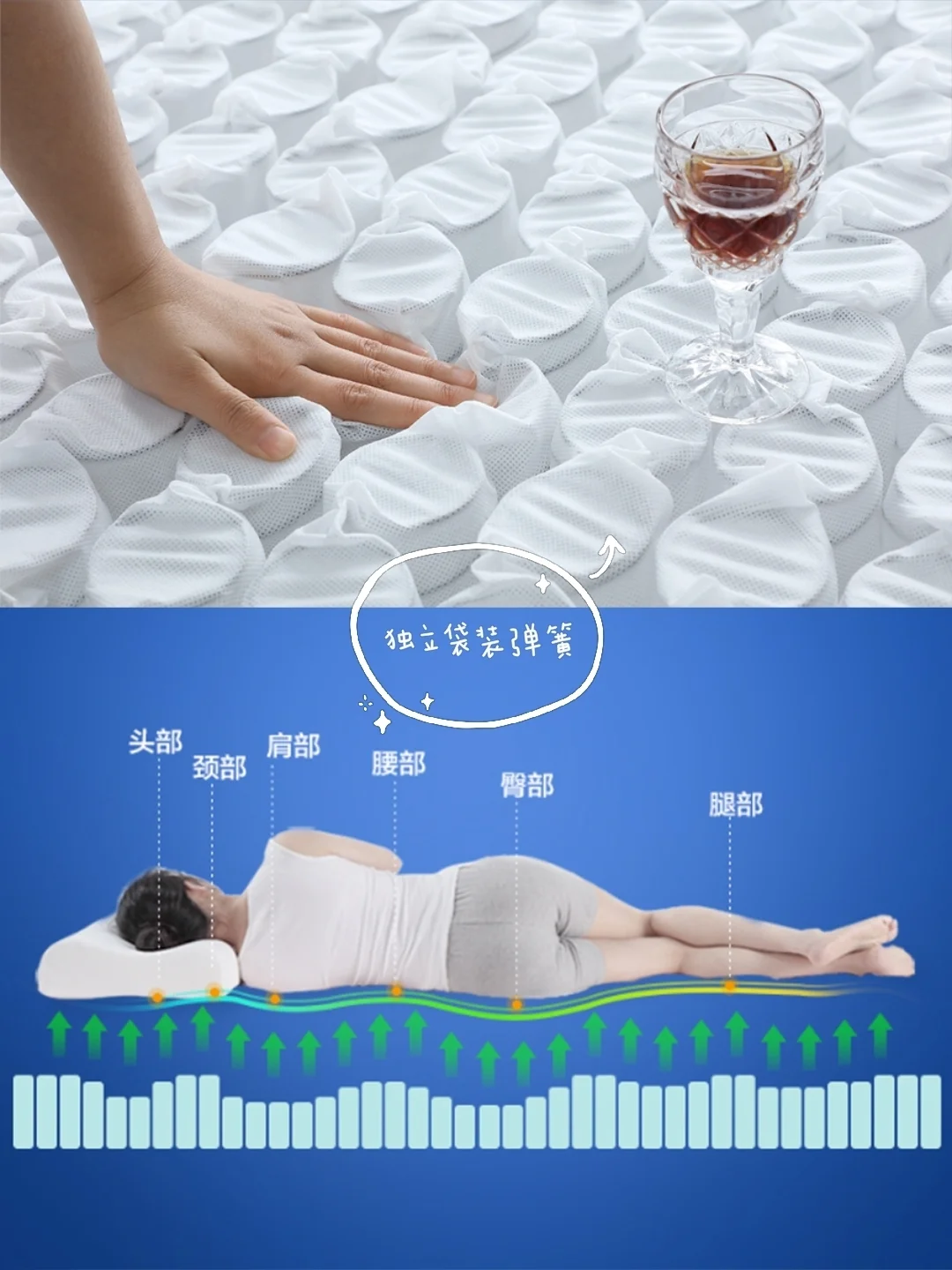 🔹记忆棉:慢回弹,包裹性好,但易蓄热