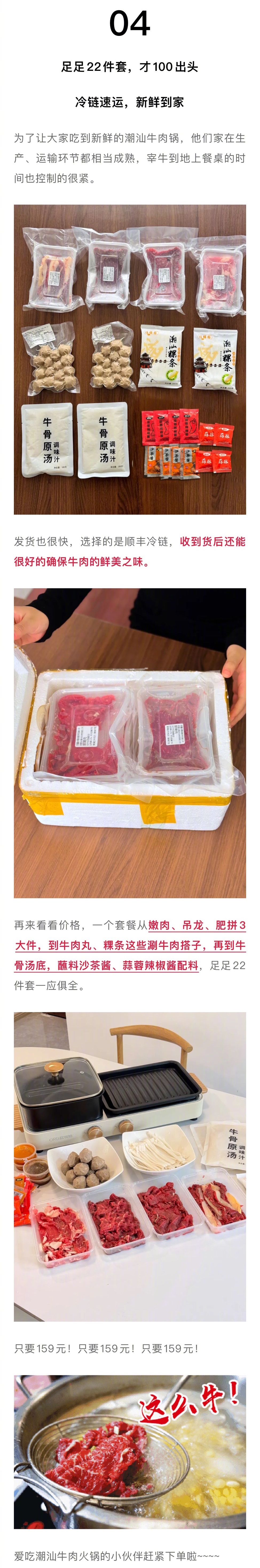 天气一冷,身体就自动开始缺火锅了。外面冷风呼呼,吃上一顿热气腾腾的牛肉火锅别提多得劲了!平时吃不了辣或者最近想吃点清淡的宝子们强烈推荐你们试一试潮汕牛肉火锅,清甜爽口无负担,就为了这一口本味~今天就直接把这顿火锅安排到位,不用自己切不用出门排队,在家就能吃到这口美味。这个牛肉火锅套餐一共22件套,牛肉牛丸汤底蘸料一应俱全!粉丝特惠价只要159,想吃的宝子们速速下单啦