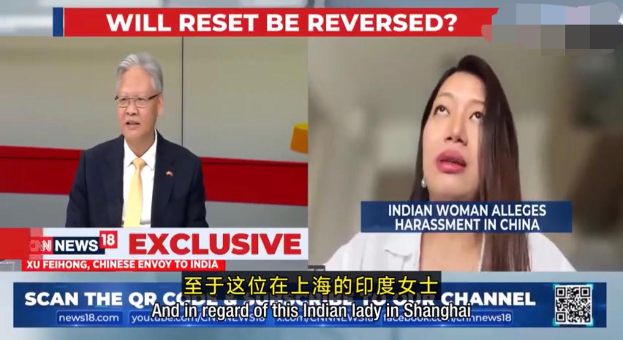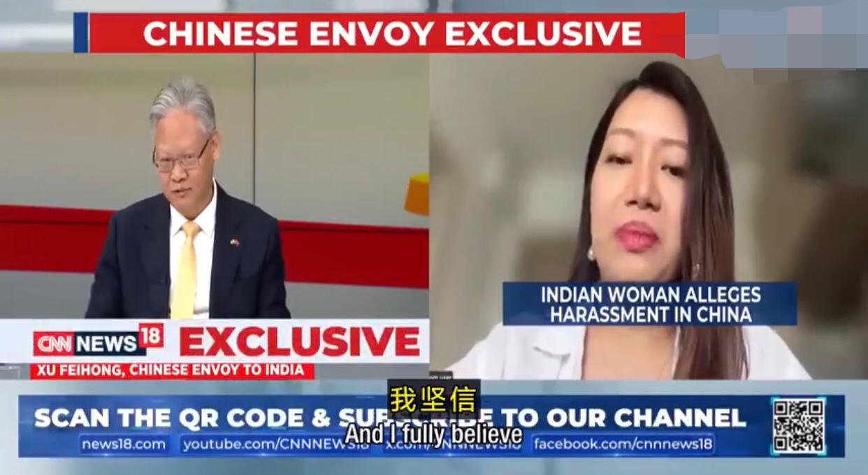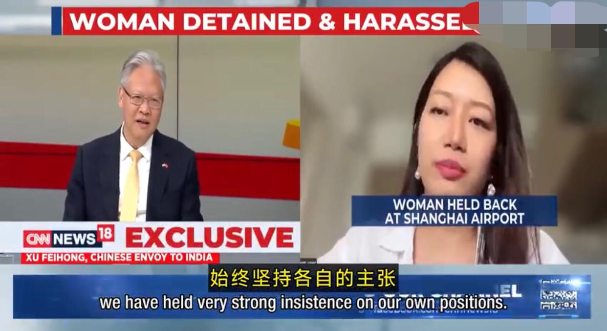 中国驻印度大使徐飞洪在回答印度主持人提问时,可能是紧张且无意的,他竟称持虚假护照而滞留上海的印控藏南女子为“印度女士”(“this Indian lady”),这不就是间接承认该名藏南女子所持的假印控藏南护照合法有效吗?藏南地区虽然在当年中印边境自卫反击战后,中国取得胜利的情况下主动撤出,没有选择实控,但是其自古以来可都是中国领土呀,其上的人、物、土地能称为印度的吗?!