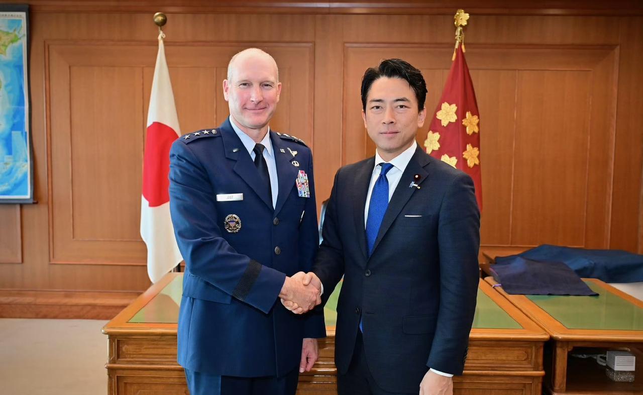 小泉进次郎会见驻日美军司令约斯特,双方表示将进一步加强美日同盟。 他还官宣在与那国岛部署中程防空导弹,跑去视察石垣岛、宫古岛的反舰导弹基地——三座岛屿直接串起“监控-打击”闭环。 嘴上喊着“防御”,转头就演练战时补给,美日导弹数据链12秒互通,再加上日本买“战斧”、搞高超音速武器,所谓“专守防卫”早成笑话!