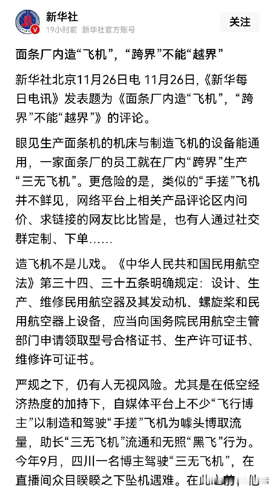 山东魏桥“手搓”飞机为何舆论一边倒? 官媒多次出面回应,依然挡不住网民的愤愤不平! 拥有一架自己的飞机、一辆汽车、一艘快艇是多少人的梦想,而大多数人都是通过努力工作挣钱,最后实现这说大不大,说小不小的愿望。 但是一部分人却因自己条件限制,可能一辈子也无法完成愿望,更是有极少的人,想通过自己的双手造出一个专属自己的飞机等等,让梦想通过自己一锤子一锤子敲出来,或者是一剪刀一剪刀剪出来。 正如大鹏电影里的台词一样,他的摇滚乐队,是他的妈妈一脚一脚蹬缝纫机蹬出来的,最后取名为缝纫机乐队。 这么多人支持这个面条厂的老板,更多的是看到曾经年少轻狂的自己,那时候自己或许也在为梦想拼搏奋斗,最后被现实打碎成一地鸡毛。 也是希望现在正在奋斗的自己,就像面条厂老板一样,能够得到宽容、支持和理解,虽然明知道不合法,依然愿意为了自己的爱好和完成别人的梦想,不懈努力,他更像是一个筑梦者和守梦者。 大多数网友也是认为,有梦想的人,不应该被扼杀,更不能一禁了之,当局者应该考虑如何能将不合规,扶持为合规,抓住低空经济的机遇,助力地方经济发展。 老百姓想法很简单,通过自己的双手,创造价值,并没有考虑到公共安全问题,这就需要相关部门进行引导。 相信在我们提供全面教育的基础上,会有越来越多的“手搓”问世,也能为科技发展贡献自己的力量! 手搓直升机 邹平飞机 三无手搓飞机 邹平造飞机 邹平三无飞机