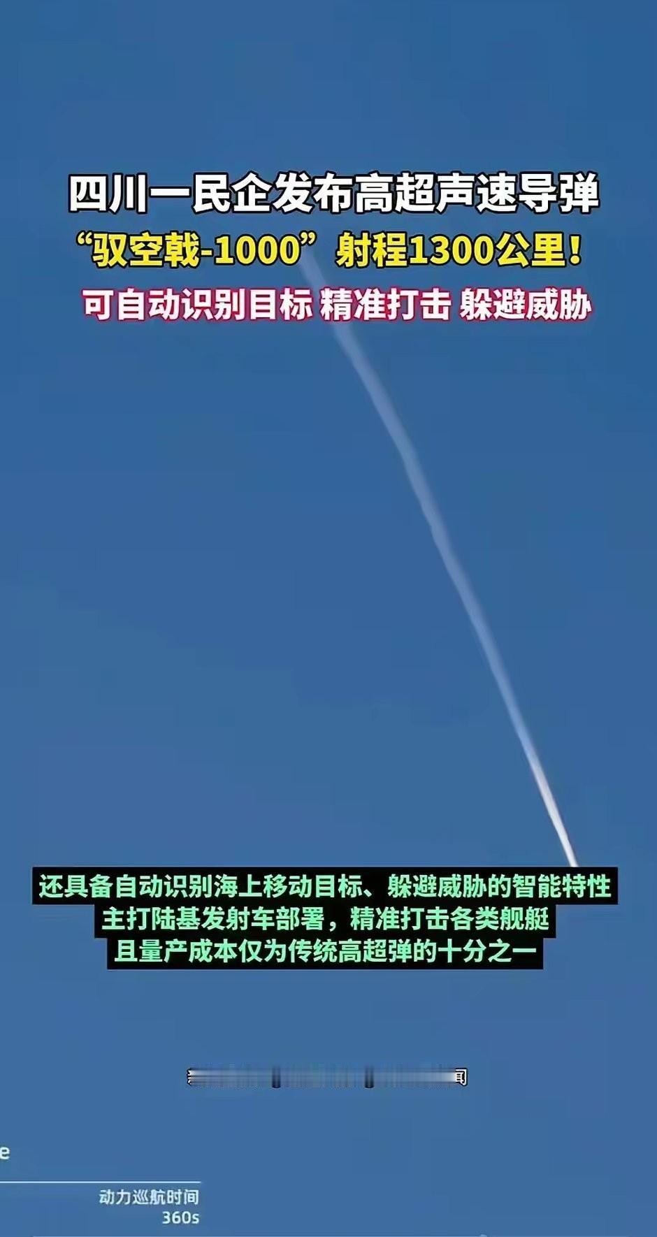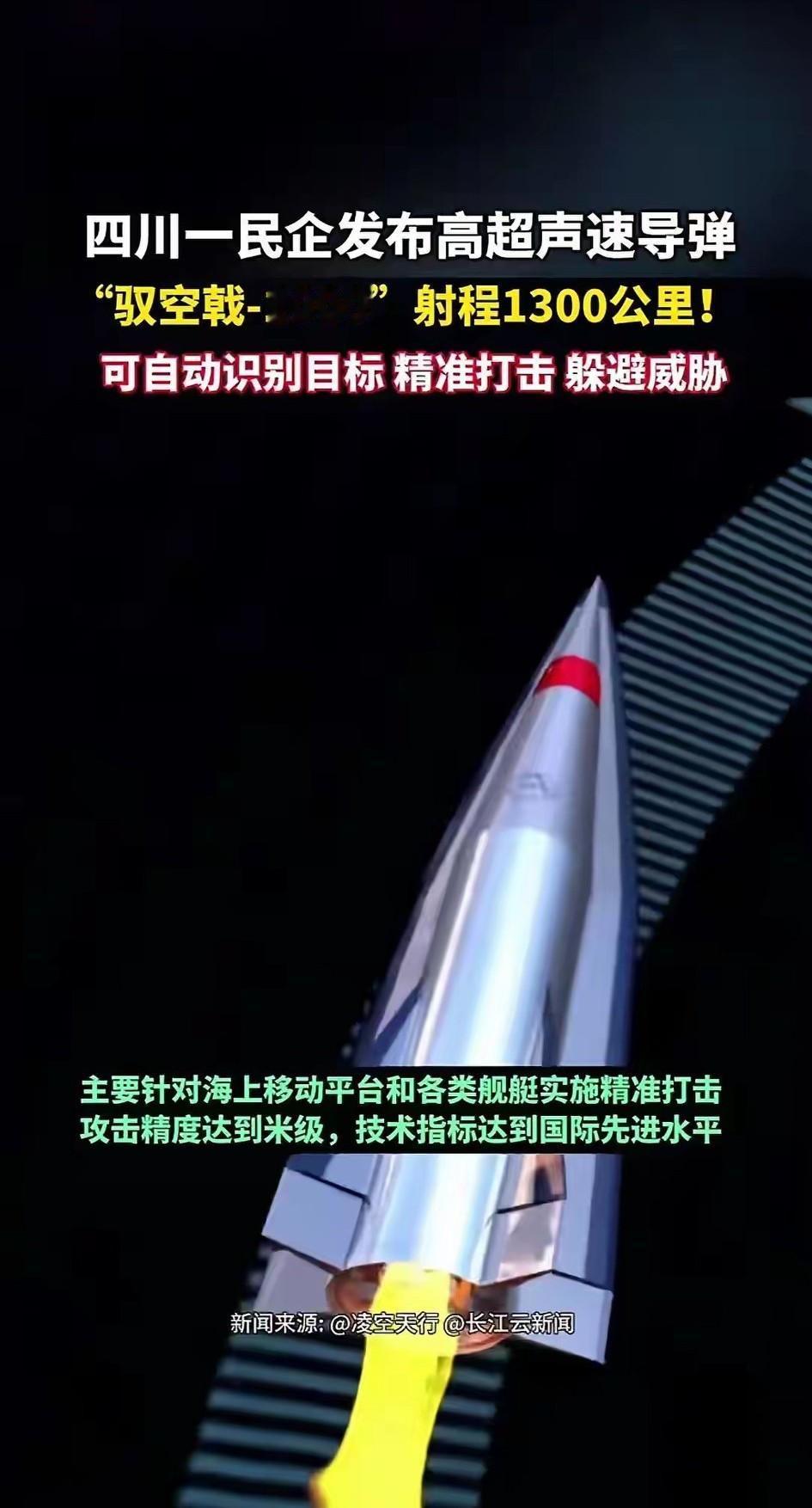 民企搞定高超音速导弹,射程1300公里,厉害👍👍👍👍! 名字取得也是高端