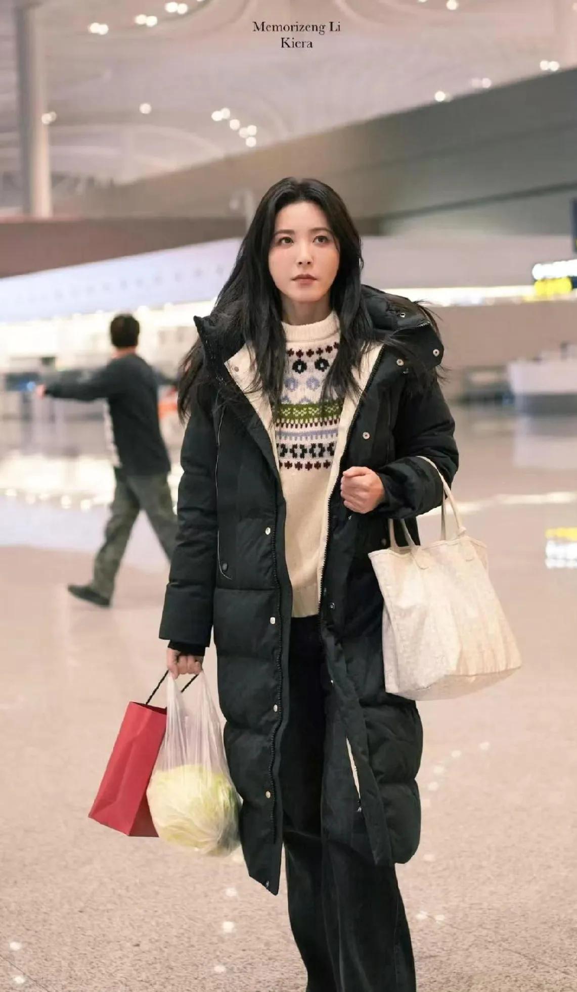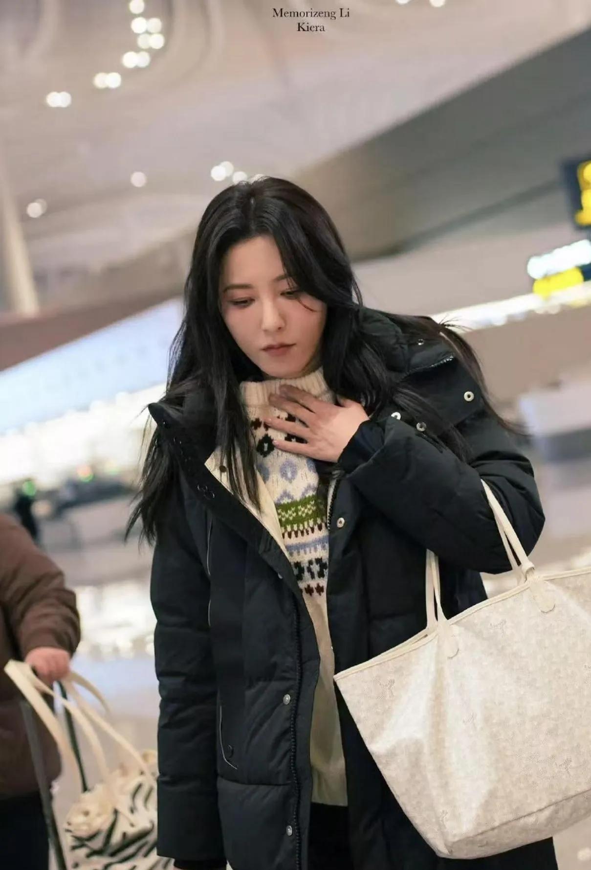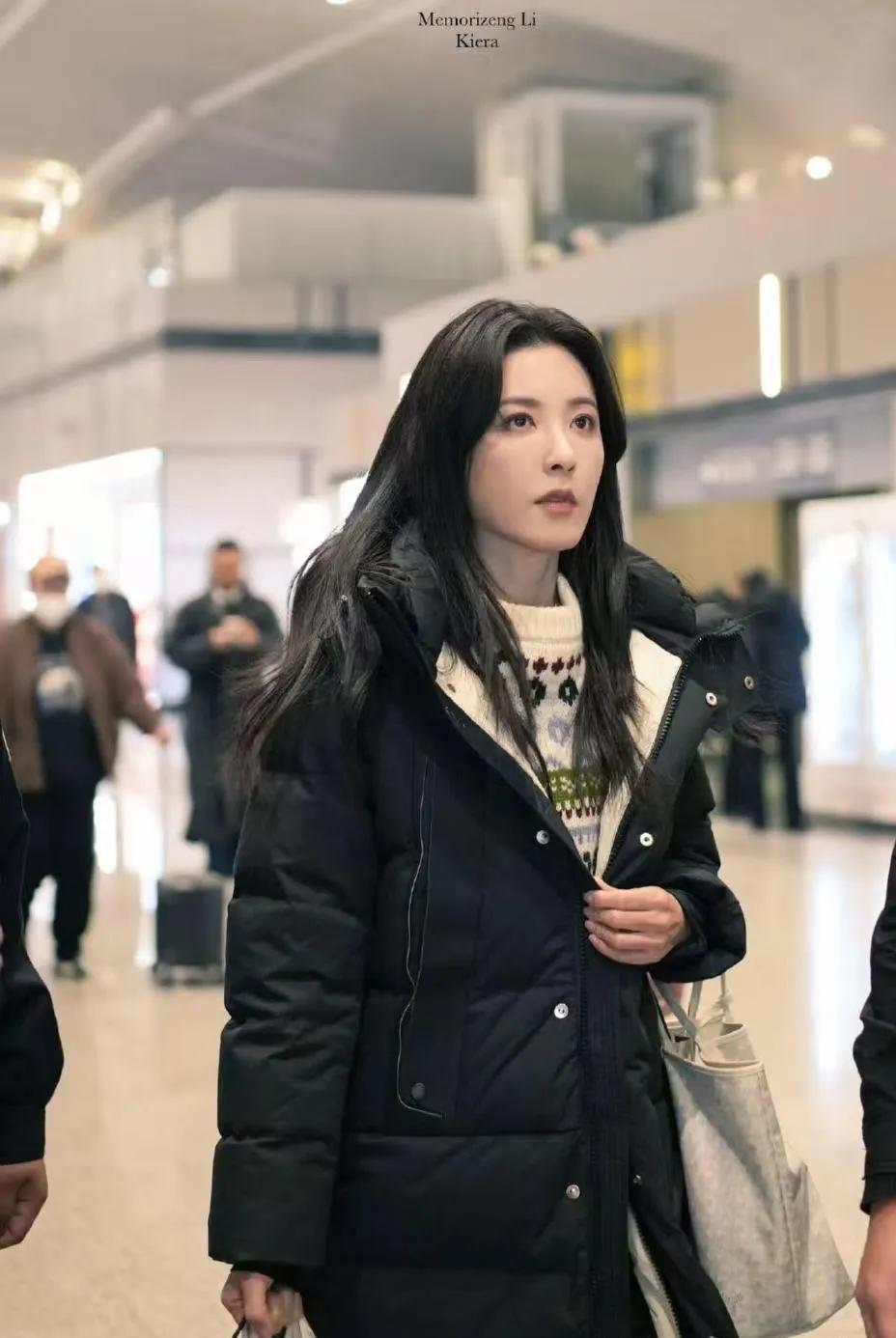 曾黎这中年穿搭,把“舒适时髦”焊在身上了! 长款黑羽绒服裹得暖和,内搭提花毛