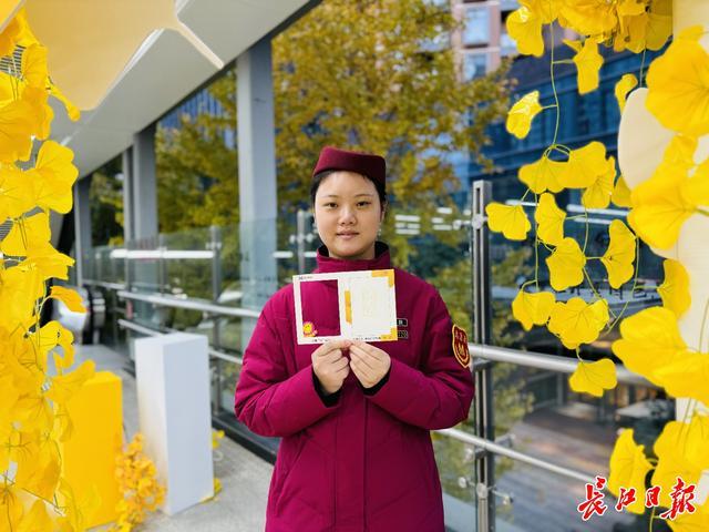 三阳路地铁站推出“三阳路银杏季”主题明信片,还可盖章留念。记者陶常宁摄
