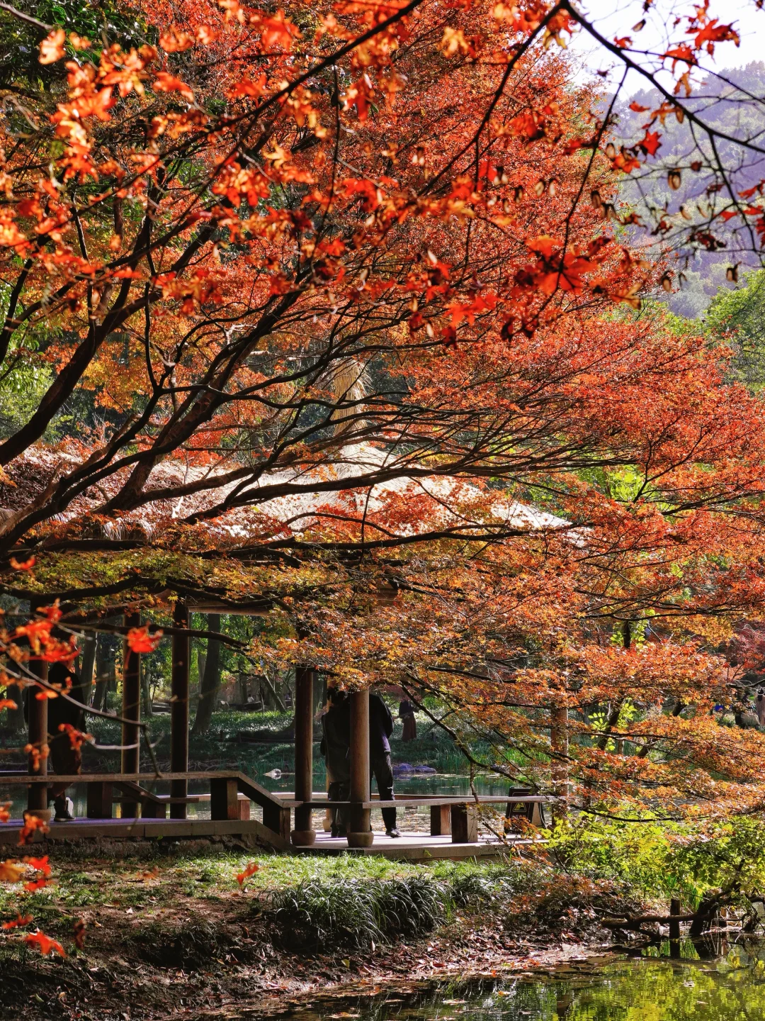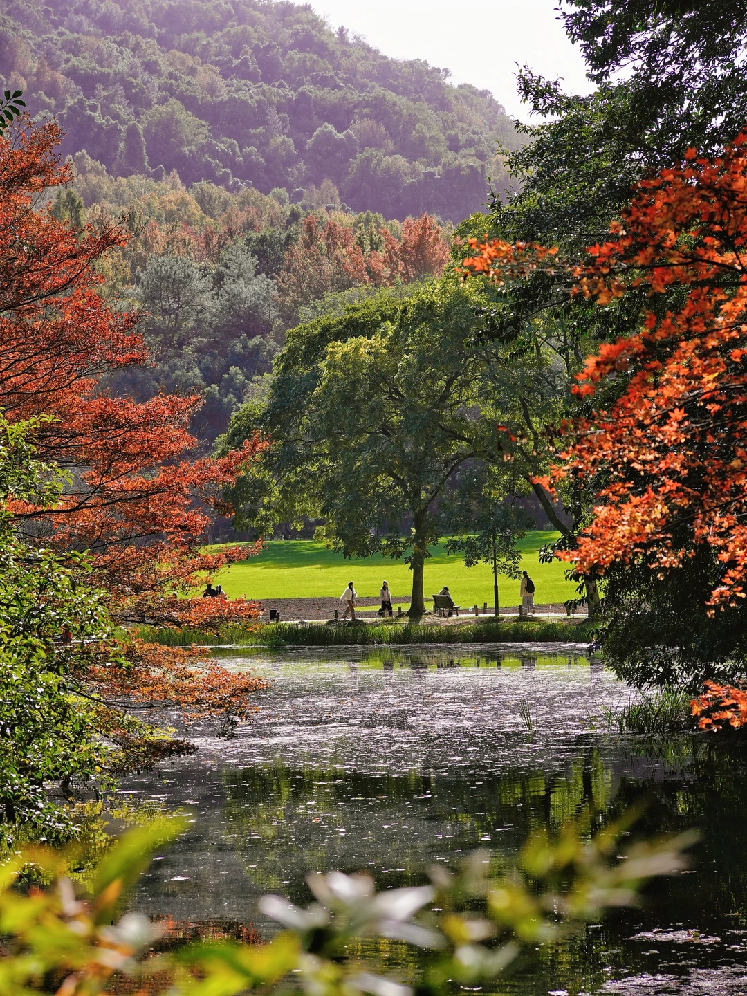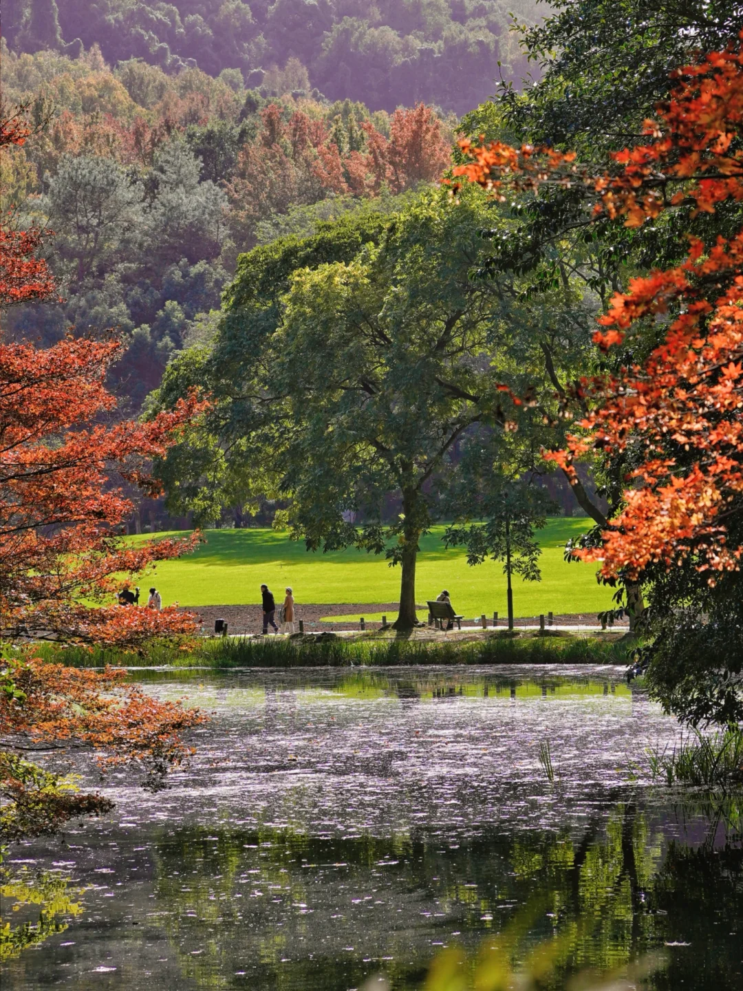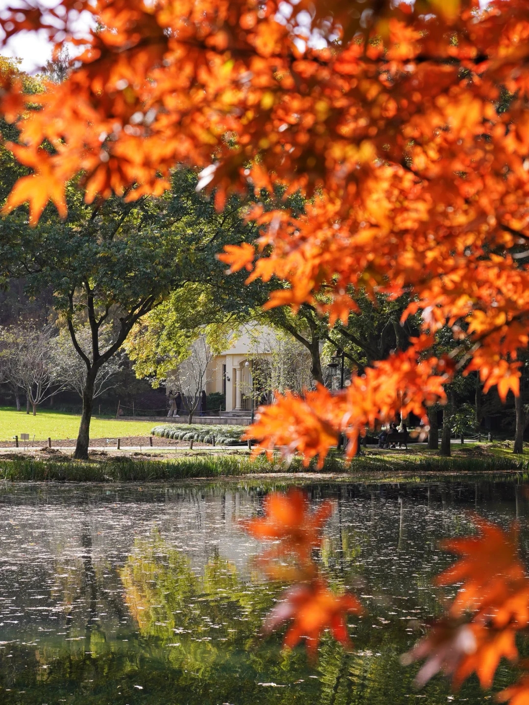 深秋的太子湾公园简直美到封神!树叶开始变黄,枫叶也逐渐变红🍁,渐变色的风景宛如一幅油画!真的好治愈! 北门入口右转的小路往前走,放怀亭附近的机位(P1-P3)必打卡!📸拍照推荐中午12:00-2:00,光线最佳! 还可以从湖畔居附近的游步道上山,爬到九曜阁俯瞰西湖秋色。 📍地址:太子湾公园 🎫门票:免费🆓 🈺️开放时间:全天开放 🚌交通:公交【赤山埠站】步行100m