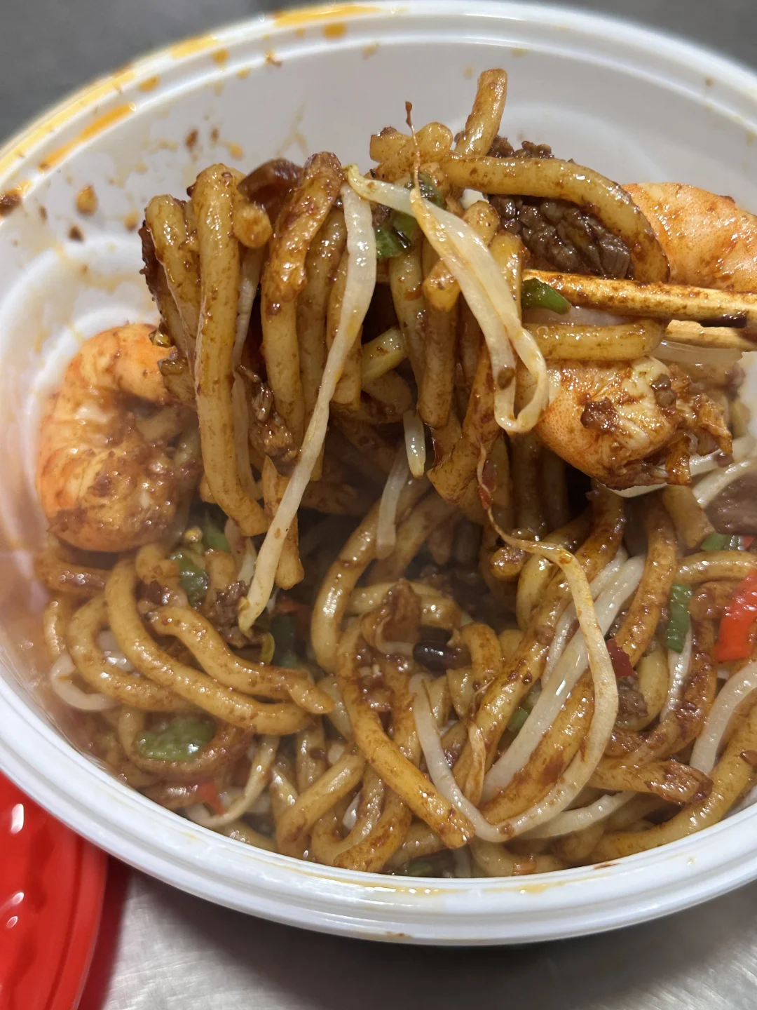 15年的老店了。炒乌冬面巨无比好吃,像我妈妈炒的一样(湖南妈妈)能吃出来猛火爆炒的感觉!!“牛魔王下海”这名字听起来就很高贵、真的巨好吃[生气R]如果有条件我还能吃三盆...这家除了要排队没什么缺点了。