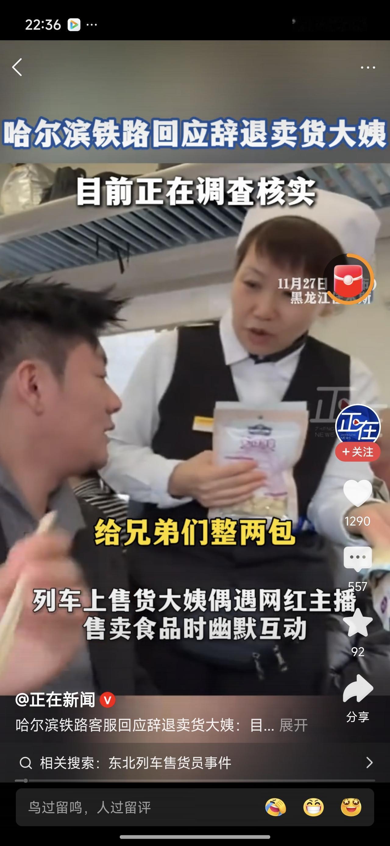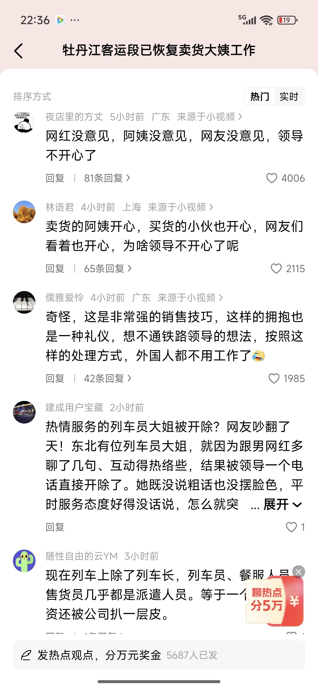 铁路大姨抱了抱大帅哥被辞退了? 影响啥形象啊!又不是被大姨拿下了,就只是卖完货,抱了抱。 领导要是也想报,那你下来卖货啊!那个有想抱的,可以问问别人,乐意不乐意。不乐意的话,你再等等。 全程阿姨也没有过分的举动啊!推销产品,夸小伙算账快。哪里有毛病啊!一个电话把阿姨给辞退了!体现了东北虎么不是?