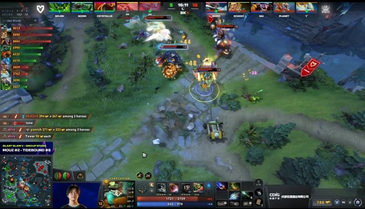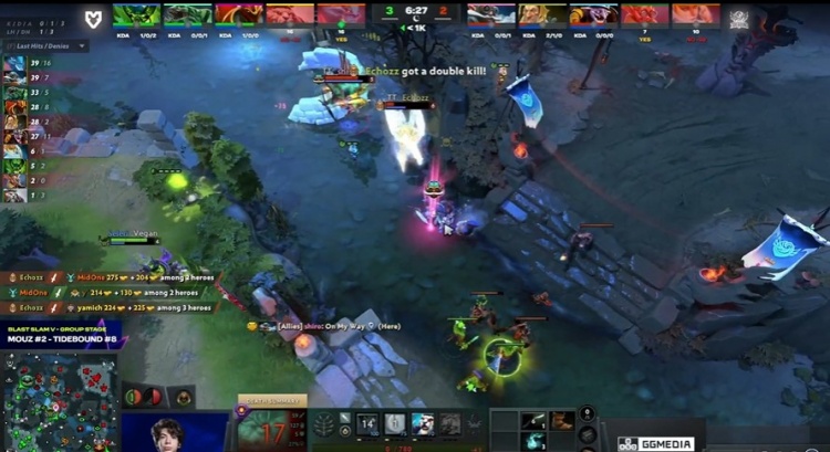 [24分钟]Tidebound中路上高,MOUZ拉扯断线还是被破了中路高地。