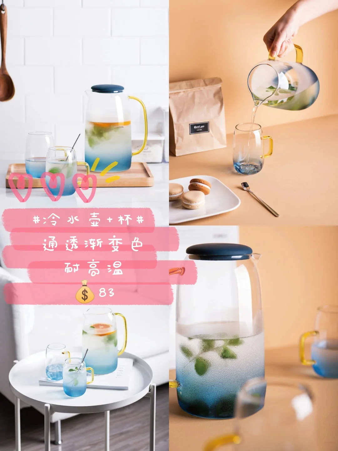 这套玻璃冷水壶,渐变色很像海洋🐳,也太好看了吧~😹别光顾着叫女票多喝热水,直接送她这个不好吗?