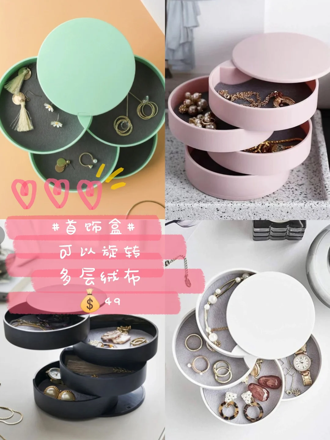 这个💍首饰盒有四层,是旋转式打开的,不占空间hin能装,打开后还能当装饰品🤗呢~