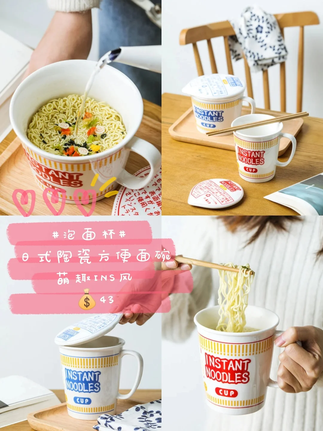 这款泡面杯咋一看以为是霓虹国🇯🇵某杯面,其实是陶瓷泡面碗啦,hin有创意的设计😏,萌趣INS风!