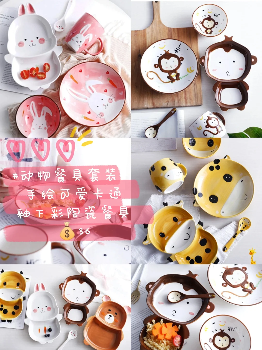 喜欢萌物的女生,一定会喜欢这套釉下彩陶瓷餐具,手绘可爱卡通,有🐰兔子、猴子🐵、长颈鹿🦒,卡哇伊~