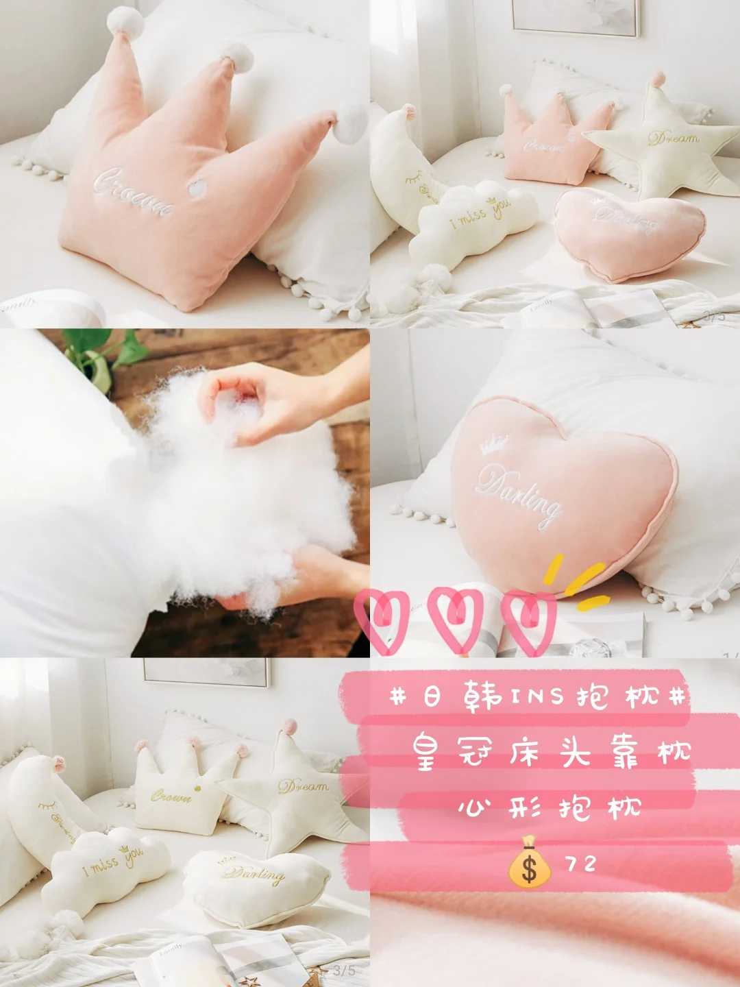 👑皇冠抱枕,很适合送给女王哦,既是抱枕,也可以做床头靠枕,棉花很饱满很舒服哦~💖心形抱枕就比较甜美!
