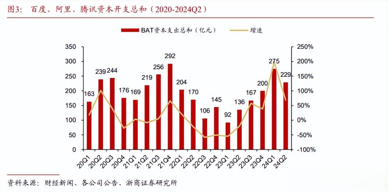 而字节在AI领域投入的资金也丝毫不弱。浙商证券及第三方分析及机构研究报告显示,其2024年资本开支达到800亿元,接近百度、阿里、腾讯的总和(约1000亿元),研发投入显著领先同行。
