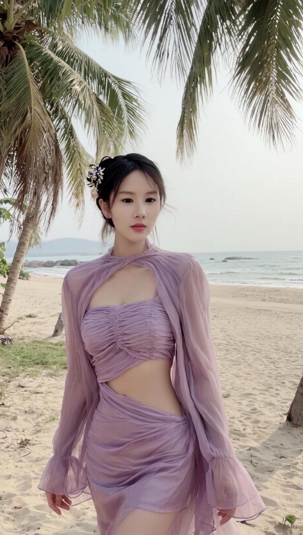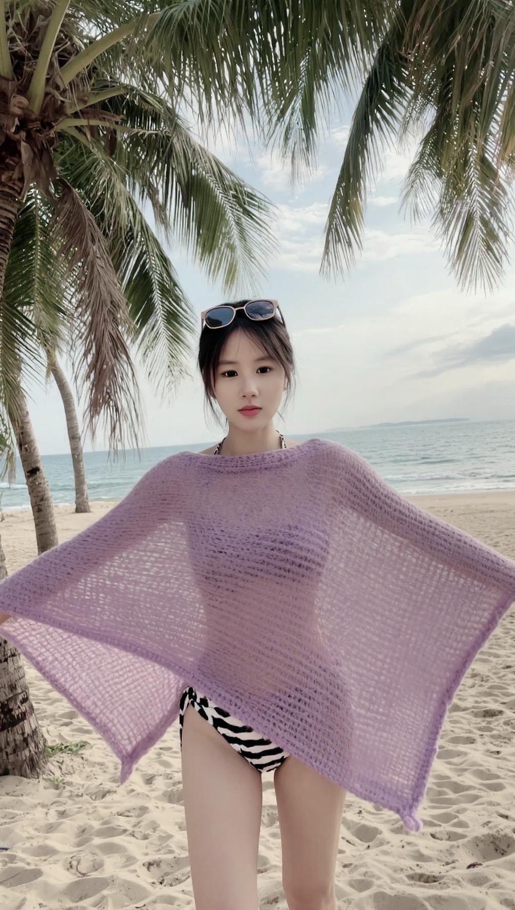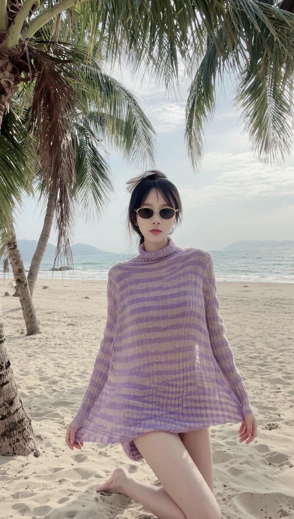 海边打卡,比个V字,元气满满的一天!🌊👩❤️💋👩