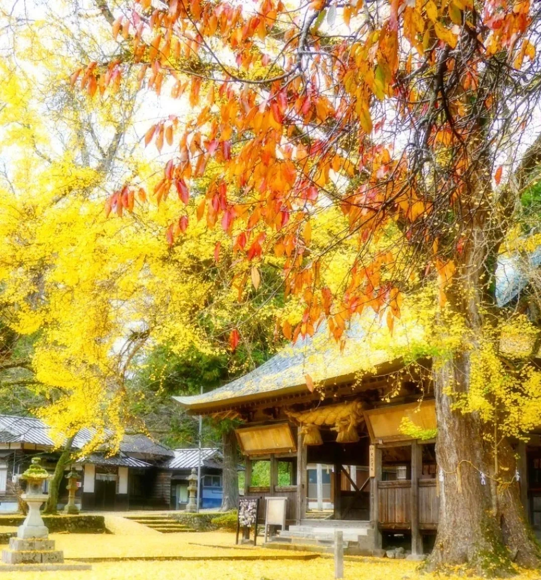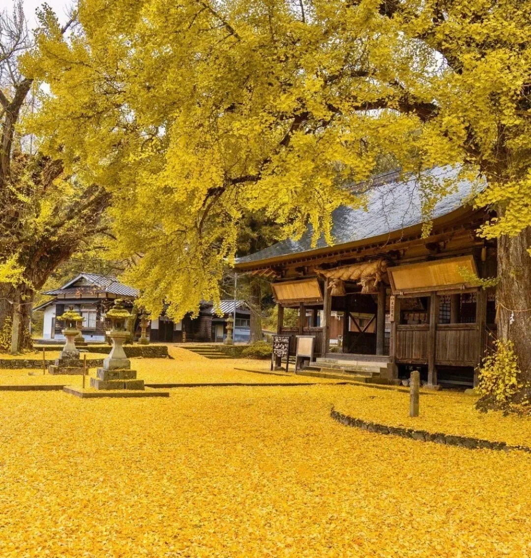 🎊景点名:福田神社 💌地址:真庭市蒜山中福田392 🔍值得看: 🌈人定胜天的神话已经过去了,瞧瞧这里的两棵银杏树,它们的树龄有650年!人类最长不过百年嘛,这里带给我的首先是对生命的震撼~ 🌈不说果实,单讲落叶吧,秋季落叶洋洋洒洒,铺满了整个神社!明亮的色彩给人温暖,让人有种躺在上面打个滚的冲动~ 🌈当然还有几处红叶的点缀,加上又是在神社内,算的上是一次心灵洗礼吧 *图片源自网络