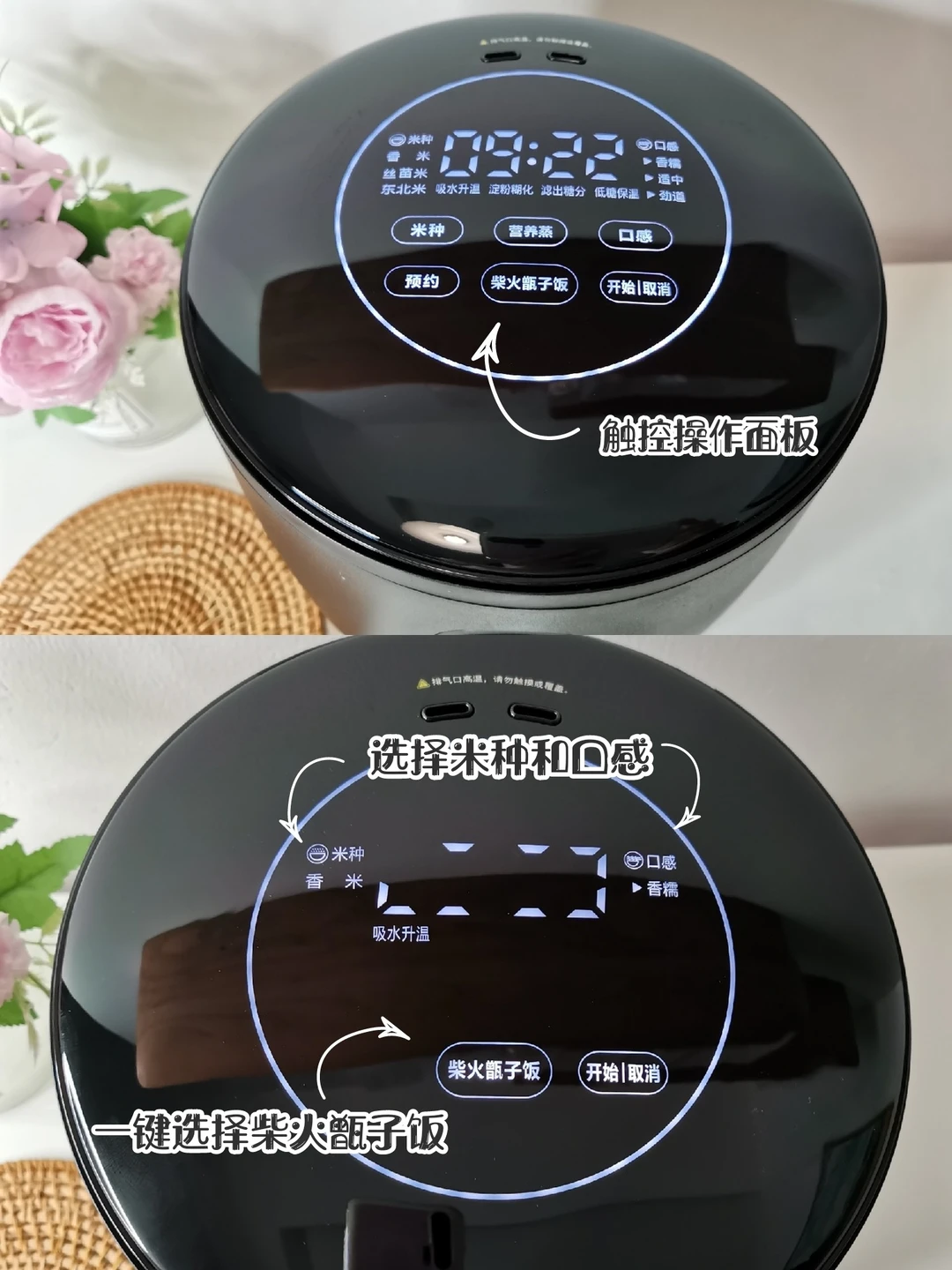 🔆小甑电饭煲做出来的米饭口感跟普通米饭差不多,做饭时间大概是30分钟,触屏操作简单方便,想要降糖的姐妹们买它就对了!